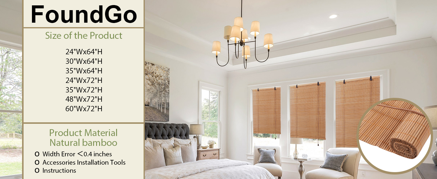 【تركيب بدون مجهود】تأتي ستائر الخيزران FoundGo مع جميع الأجهزة الضرورية، بما في ذلك خطاف خالٍ من الثقب، مما يلغي الحاجة إلى أدوات التثبيت ويحمي جدرانك. يتم أيضًا تضمين خطافات مثقوبة سهلة الاستخدام لطرق التثبيت الاختيارية.