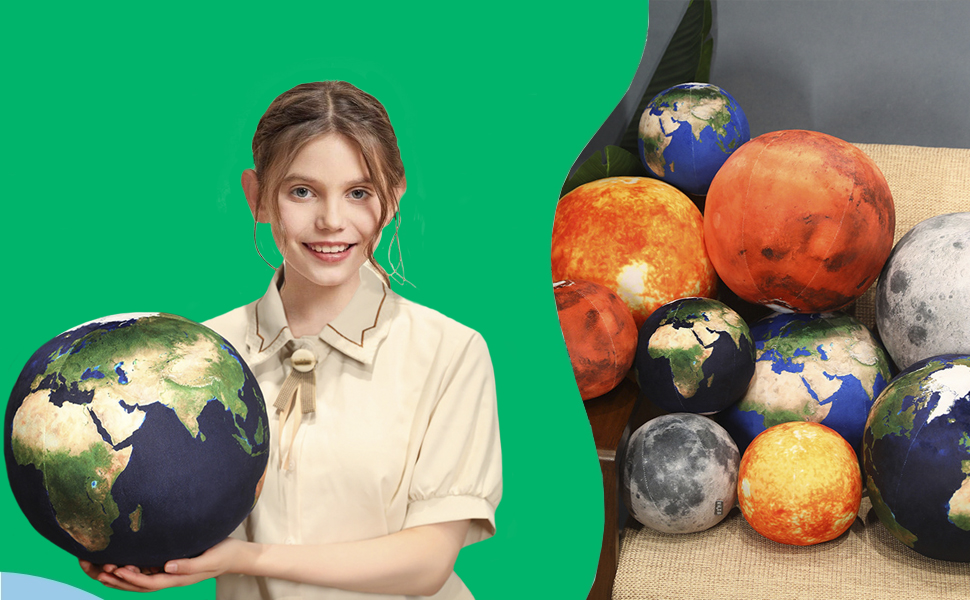 😍صناعة جيدة - لعبة الكوكب القطيفة ذات الأرض الزرقاء لطيفة للغاية ويمكن استخدامها بسهولة للأغراض التعليمية. الدرزات ضيقة ومخيطة جيدًا بدون غرز فضفاضة أو خيوط أو بقع تظهر كما لو أنها قد تؤدي إلى ثقب.