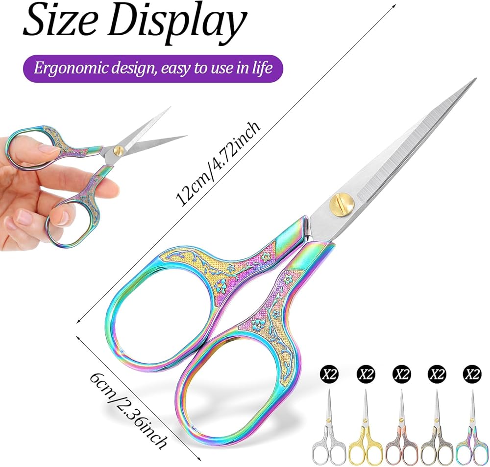 Discover our 10-Pack of premium small sharp scissors, perfect for detailed work. These versatile small scissors for sewing and crafting are essential tools. The set includes five stunning finishes. Our high-quality small craft scissors feature sharp, pointed tips. These embroidery scissors small sharp are made from durable stainless steel. You'll love the precision of these sharp small scissors for any task. Reliable small sewing scissors sharp for professionals and hobbyists. Dependable scissors small sharp for long-term use. Invest in these superb small precision scissors for your collection.