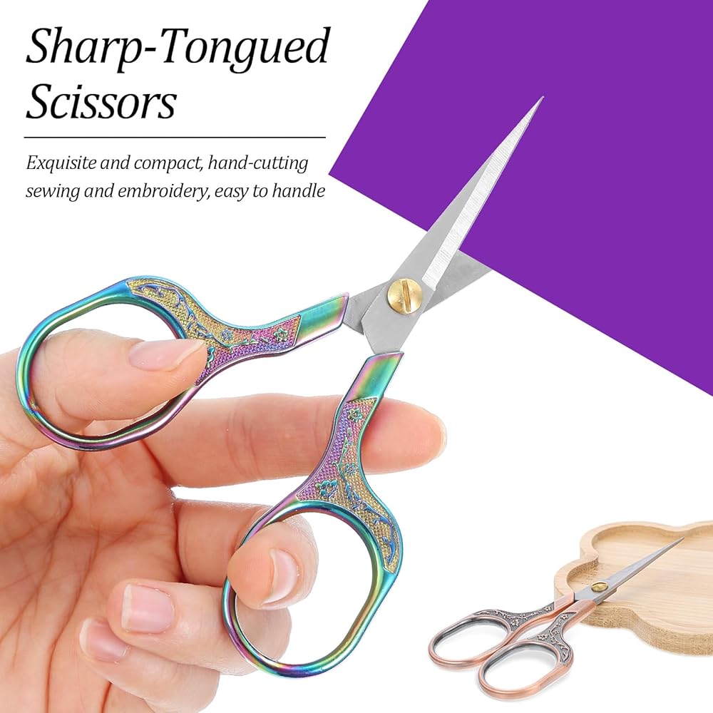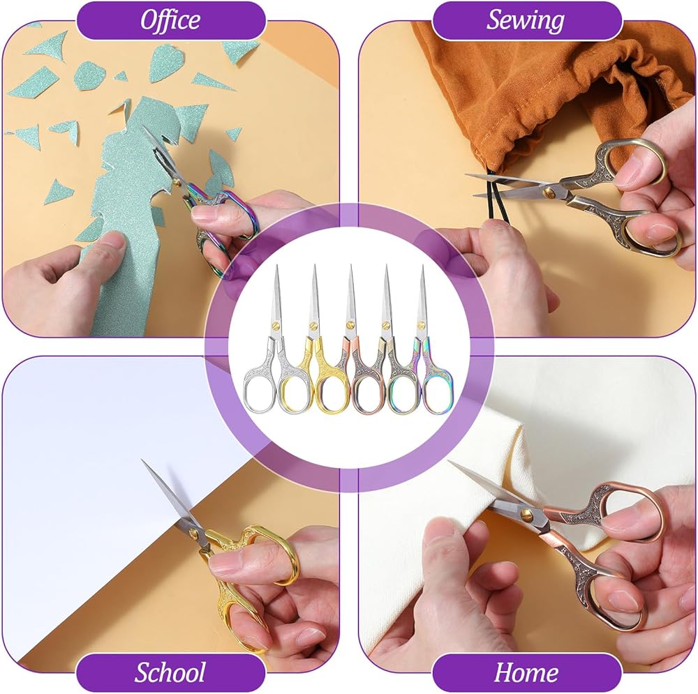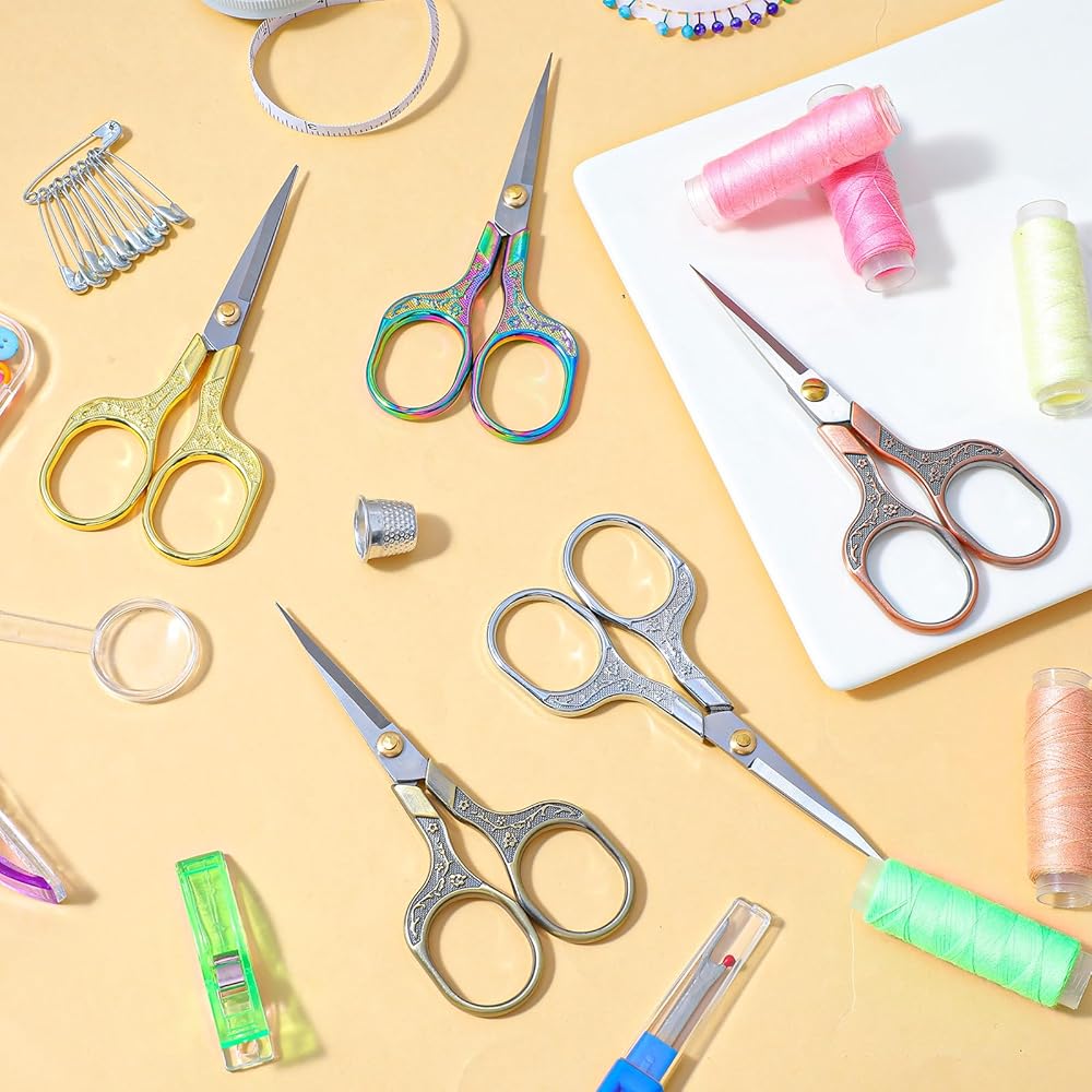 • 【10-Piece Value Set】This comprehensive set features 10 pairs of small sharp scissors, offering incredible value. The collection includes 5 elegant vintage floral finishes (Silver, Gold, Rose Gold, Bronze, Titanium) with 2 of each color, perfect for organizing by task or user.