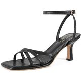- حزام الكاحل: صندل نسائي أسود بكعب منخفض مع إبزيم قابل للتعديل عند الكاحل لملاءمة أفضل.