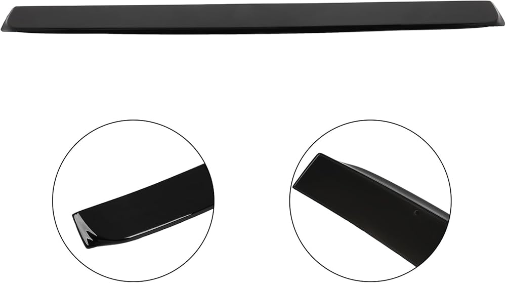 • Features - Made of ABS material. Color: Glossy Black. Installation Method: No-Drill. Surface Finish: Glossy. Placed on the vehicle: Rear