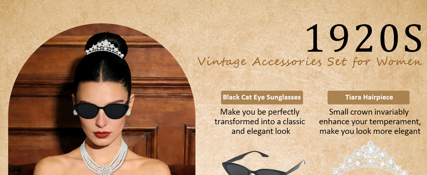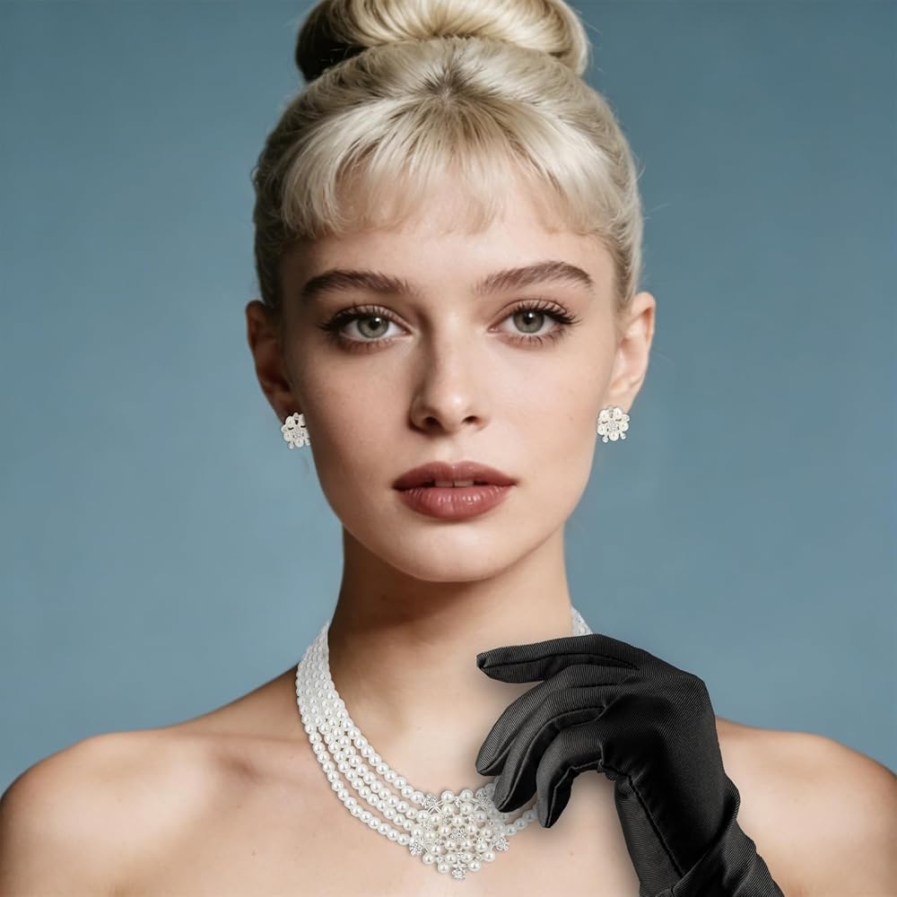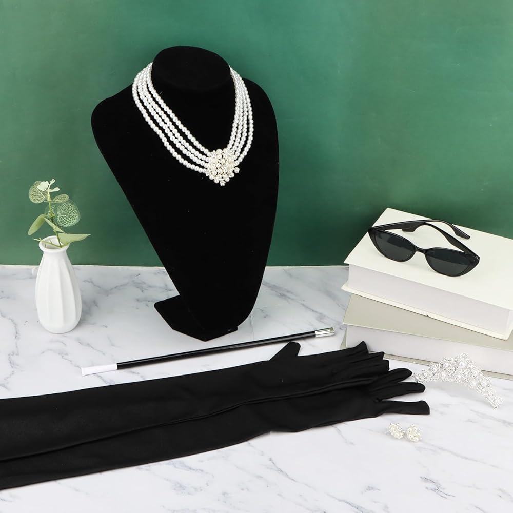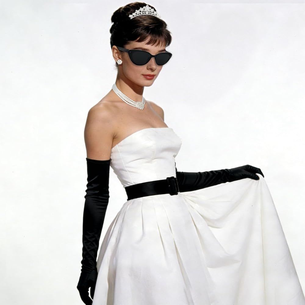 مجموعة أيقونات كاملة من الستينيات: تشتمل هذه المجموعة المتكاملة على تاج وقلادة لؤلؤ متعددة الخيوط وأقراط ونظارات شمسية على شكل عين القطة وقفازات من الساتان وحامل سجائر، حتى تتمكن من إنشاء مظهر أصلي مستوحى من هولي جوليتلي دون خلط أو مطابقة القطع المنفصلة.