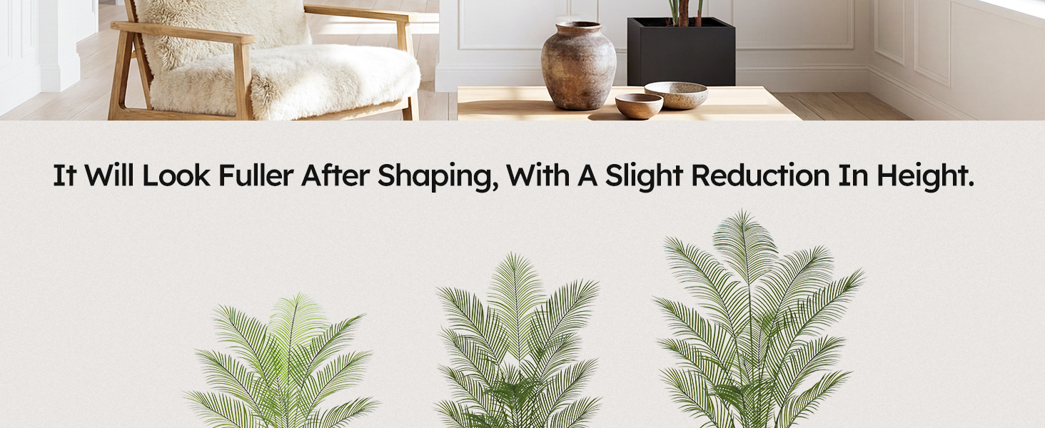 مظلة قابلة للتعديل والتخصيص بالكامل: قم بثني وتشكيل جنة النباتات الصناعية المثالية في الأماكن المغلقة بسهولة! يحتوي كل فرع على أسلاك مرنة، مما يسمح لك بنفش السعف ووضعها لتحقيق الامتلاء المثالي. يمكن تصميم هذه النباتات المزيفة سهلة التصميم لتناسب مساحتك الفريدة في دقائق معدودة فقط.
