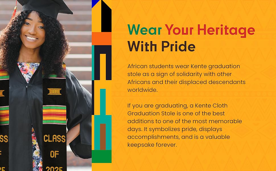 نسيج مذهل - مظهر جميل - ملاءمة صحيحة - موجه نحو الثقافة - وشاح قماش بتصميم كينتي - جاهز للتخرج - هدية رائعة - مقاس واحد يناسب الجميع