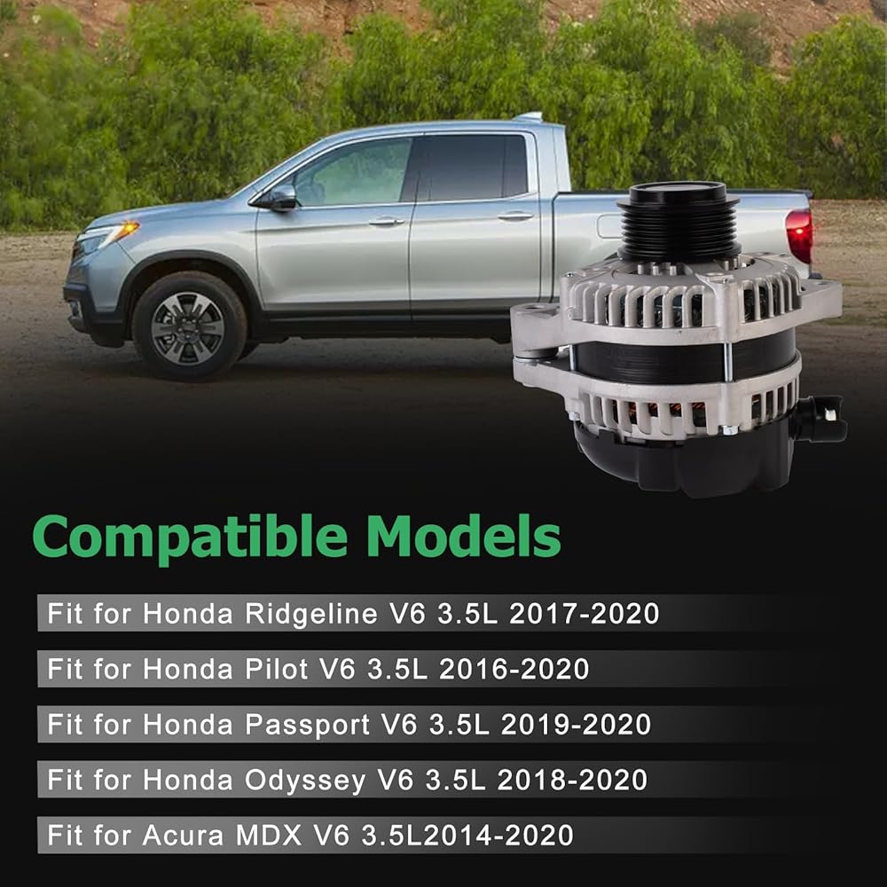مولد كهربائي 12 فولت 155 أمبير متوافق مع Honda Pilot 2016-2020، Ridgeline 2017-2020، Odyssey 2018-2020، Passport 2019-2020، Acura MDX 2014-2020 - محرك 3.5 لتر V6 يستبدل 31100-5J6-A01