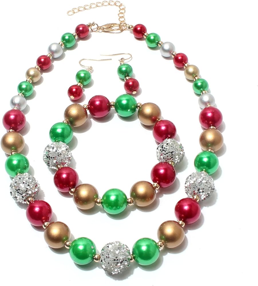 مجموعة قلادة مريلة مكتنزة لطيفة من MEQNOIG قلادة خرز عصرية لعيد الميلاد المجيد للنساء والفتيات