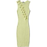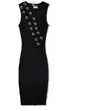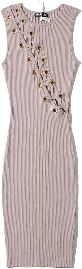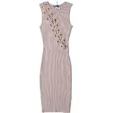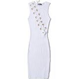 Summer Sexy Drawstring Slim Dresses Women Sleeveless Crew Neck White Knitted Elastic Dress