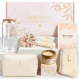 🎁【سلة هدايا جميلة مكونة من 8 قطع ستحبها】تتضمن مجموعة الهدايا الأنيقة هذه للسيدات كل ما ستعشقه: كوب زجاجي أولي، وجوارب حروف مريحة، وشمعة معطرة، وحقيبة مكياج، وربطة شعر، ومشبك شعر، وبطاقة تهنئة، وصندوق هدايا فاخر. تم اختيارها بعناية لخلق تجربة هدية دافئة ومريحة ومبهجة منذ لحظة فتحها.