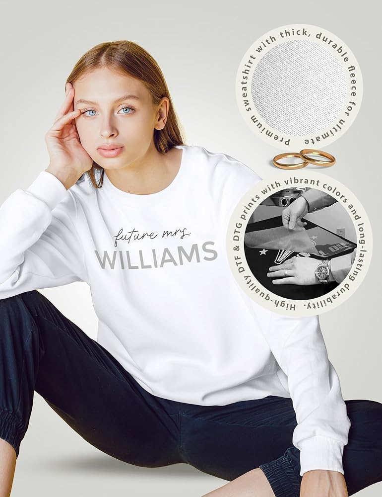 💖 "سيدة المستقبل" النابضة بالحياة. التفاصيل: إطلالة عصرية للعروس العصرية. أنت تقدم الاسم الأخير، ونحن نقوم بإنشاء "سيدة المستقبل" مخصصة. تصميم فقط لأجلك. باستخدام الطباعة الرقمية DTF عالية الدقة، نقدم لمسة نهائية أنيقة وملونة تبرز بشكل جميل في صور الخطوبة والسفر.