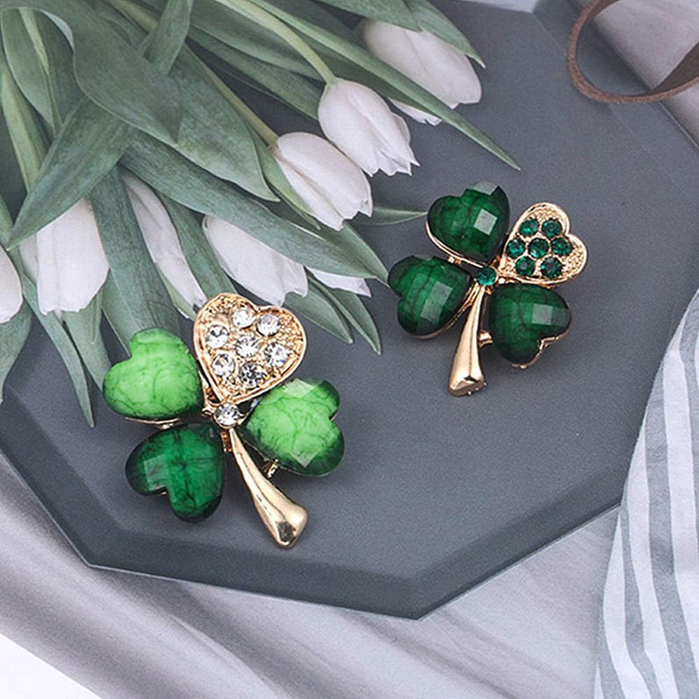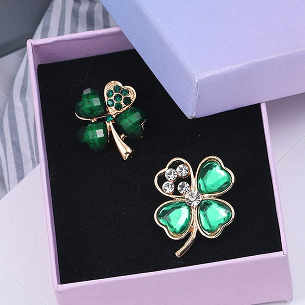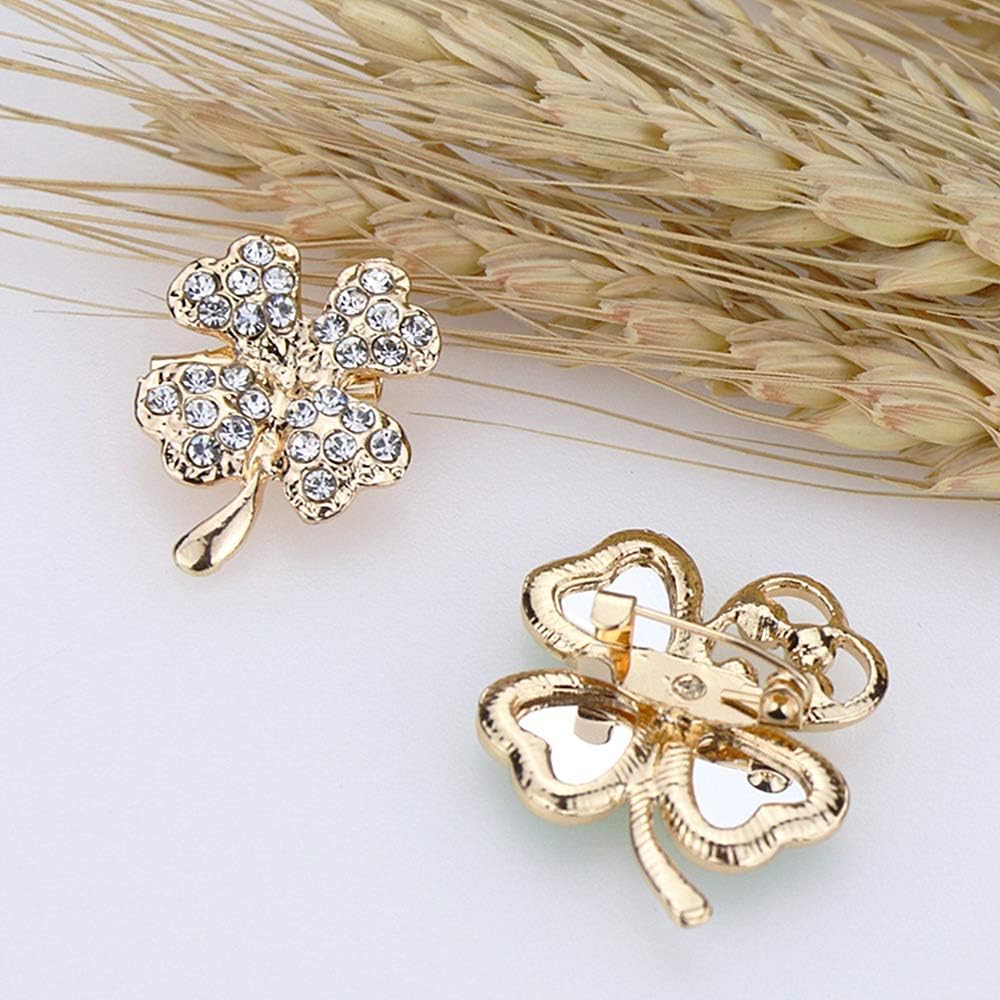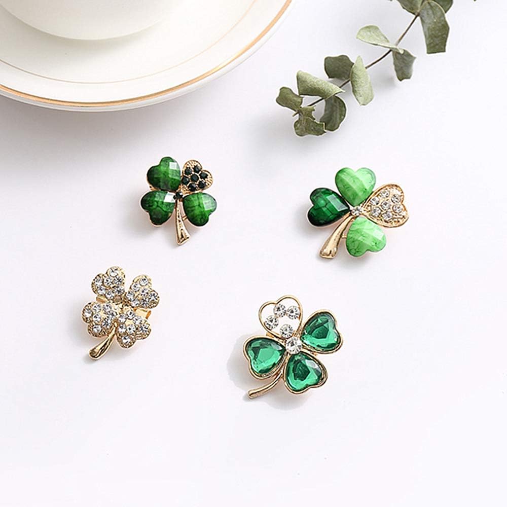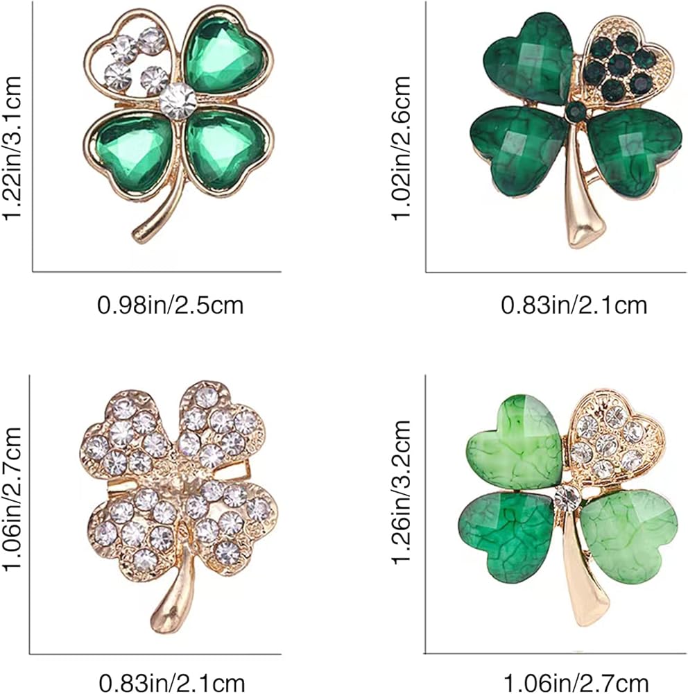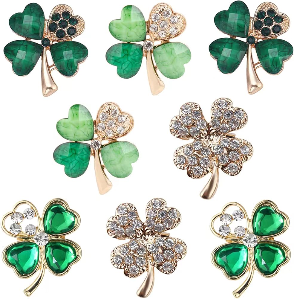 Four Leaf Clover Brooches for Women, 8 Pcs Rhinestone Brooch Pins for St. Patrick's Day Accessories, Crystal Lapel Pins for Women Girls Wedding Party and Holiday Jewelry Gift
