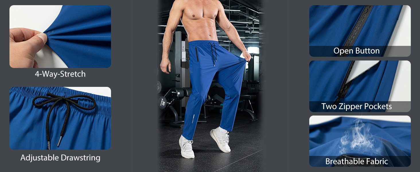 تمدد في 4 اتجاهات: استمتع بحرية حركة لا مثيل لها. يتحرك النسيج المطاطي في 4 اتجاهات في هذا البنطلون الرياضي معك، مما يضمن أقصى قدر من المرونة والراحة سواء كنت تقوم بالرفع أو الركض أو التمدد، مما يجعله سروال تدريب مثالي للرجال.