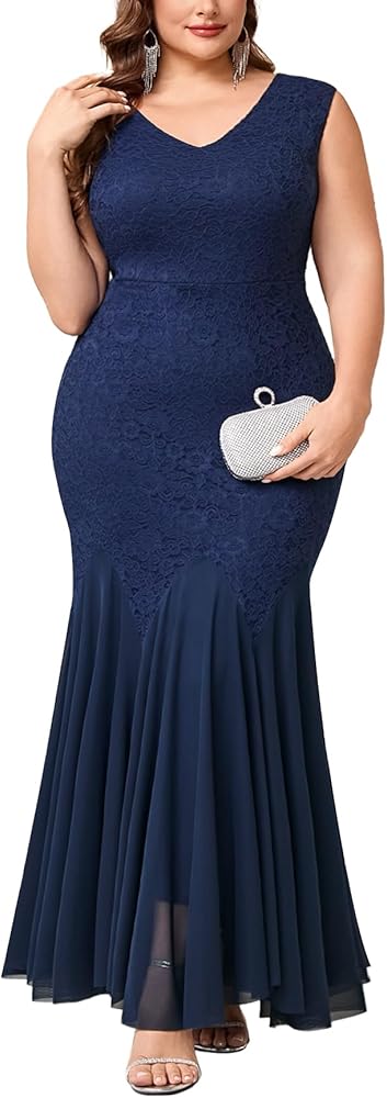 • المزايا: ربط شبكي من الدانتيل بالزهور، رقبة على شكل حرف V، بدون أكتاف، فستان طويل طويل، بوديكون عالي الخصر، بدون أكمام، حاشية شبكية على شكل حورية البحر.