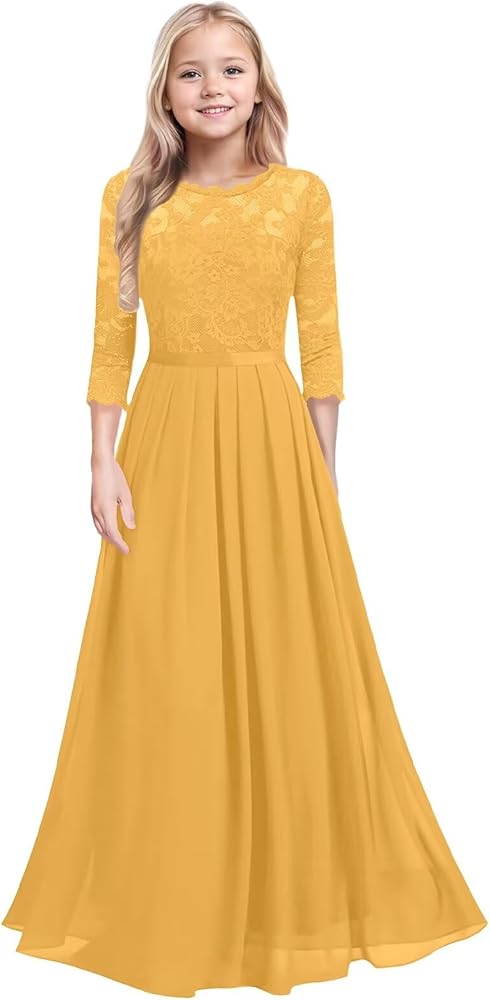 • Design:Lace Junior Bridesmaid dresses for Teen Girls Feature Long Sleeves, Crew Neck, A-line, Lace, and Zipper on the Back. Lace Junior Bridesmaid Dress,Long Sleeve Junior Bridesmaid Dresses,Pleated Chiffon Flower Girls Dresses for Wedding,Lace Girls Formal Dress,3/4 Sleeves Girl Bridesmaid Dress for Wedding is breathable, comfortable and easy to wear.