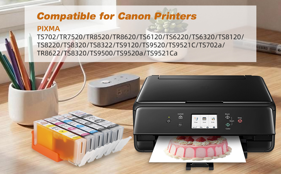 【تقنية الرقاقة الذكية】تتميز خرطوشة الحبر المتوافقة مع Canon بشريحة مطورة عالية الجودة تتكيف بذكاء مع الطابعات، مما يضمن إعادة إنتاج الألوان بدقة. خراطيش