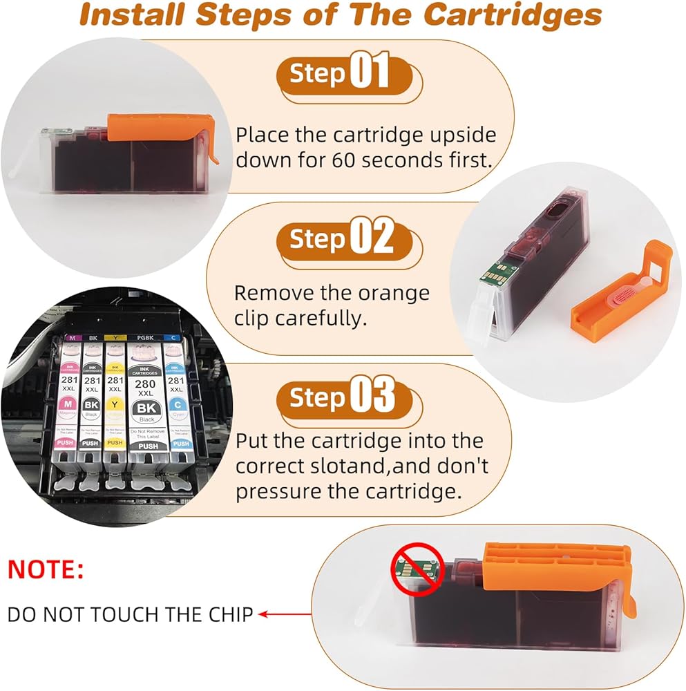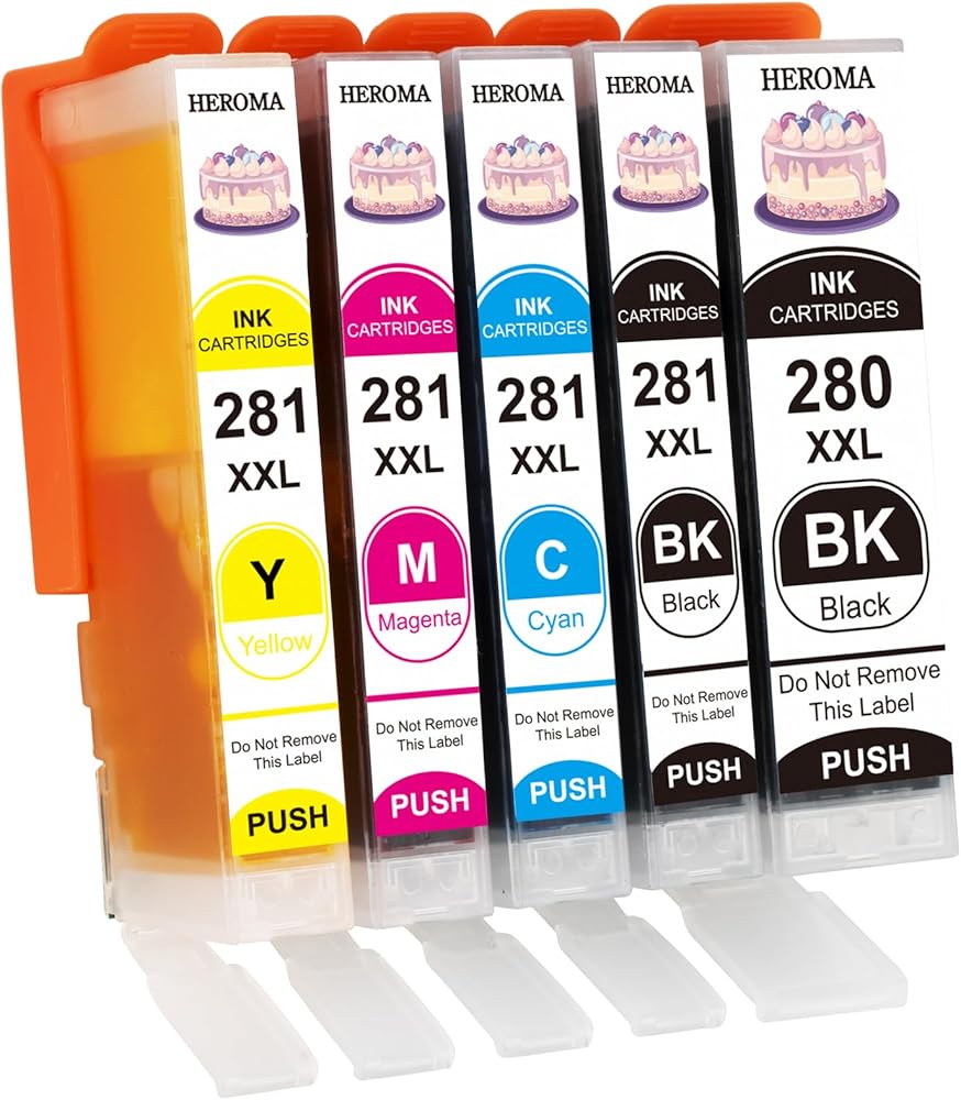 【إنتاجية عالية للصفحة】توفر خرطوشة PGI-280XXL إنتاجية تصل إلى 600 صفحة. توفر مجموعة خراطيش CLI-281XXL إنتاجية تبلغ 6360 صفحة للون الأسود و830 صفحة لكل من اللون السماوي والأرجواني والأصفر. (بتغطية 5% على A4)