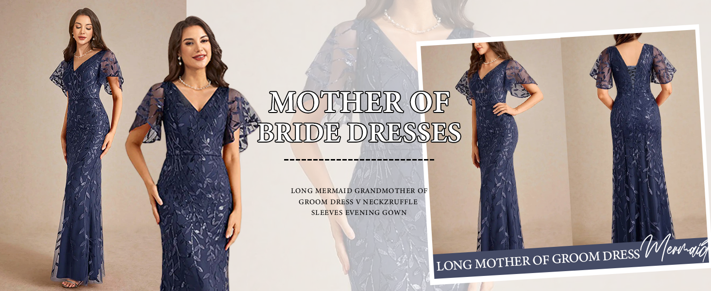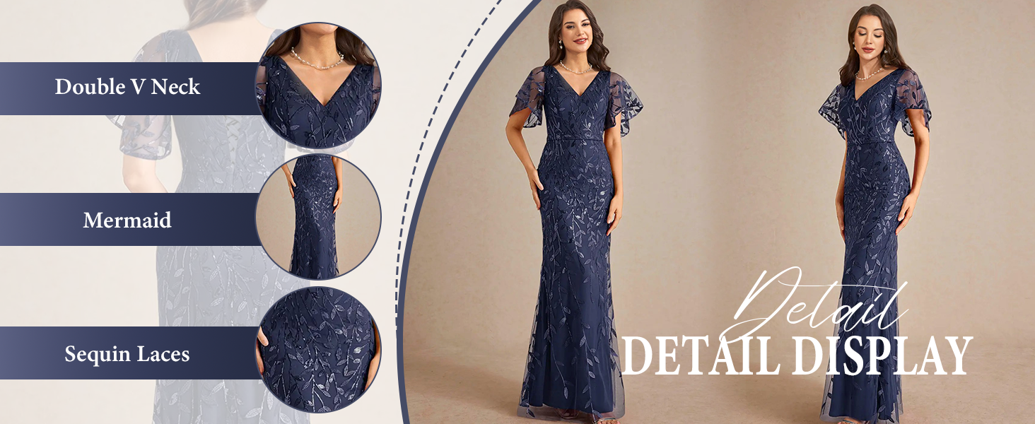 • المواد: ترتر عالي الجودة يجعل فساتين أم العروس ذات رقبة على شكل حرف V خفيفة الوزن، ومسامية، وجيدة التهوية، ومناسبة للارتداء طوال النهار/الليل