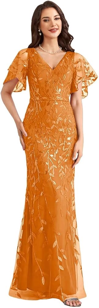 • المزايا: فستان أم العروس بأربطة من الترتر، حورية البحر، رقبة مزدوجة على شكل حرف V، أربطة لأعلى، أكمام مكشكشة، فساتين أم العريس