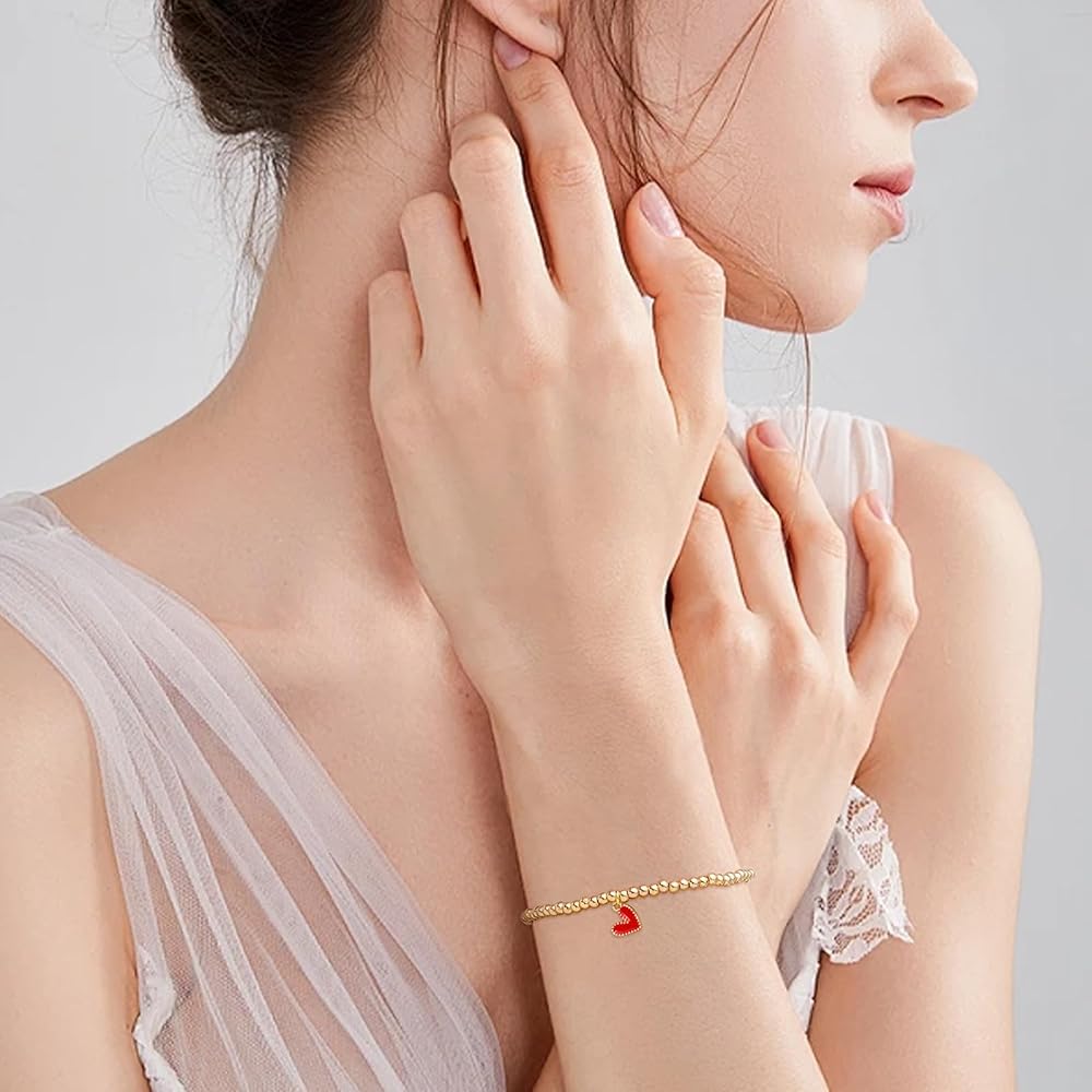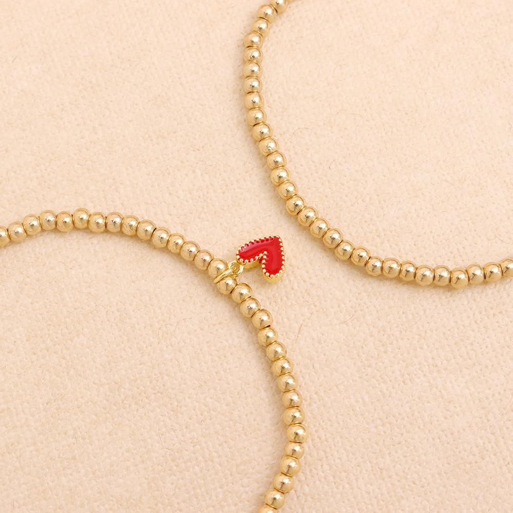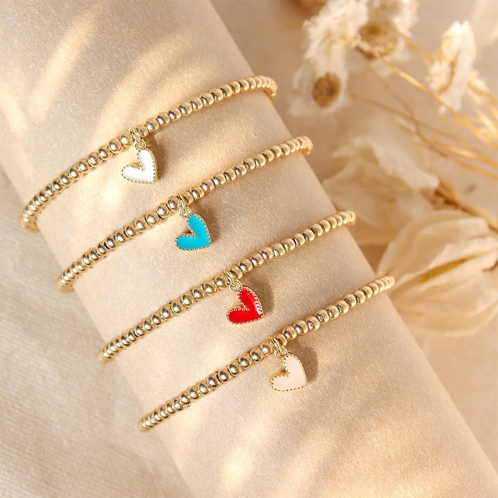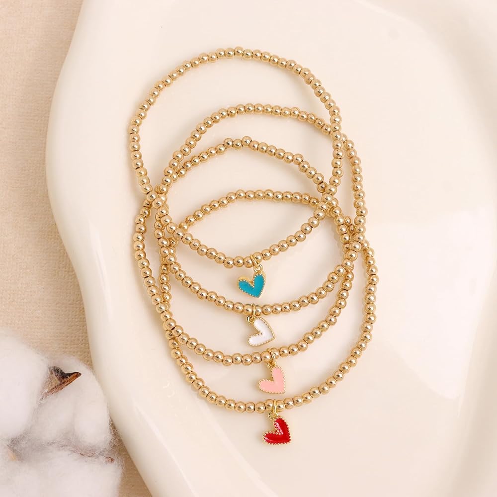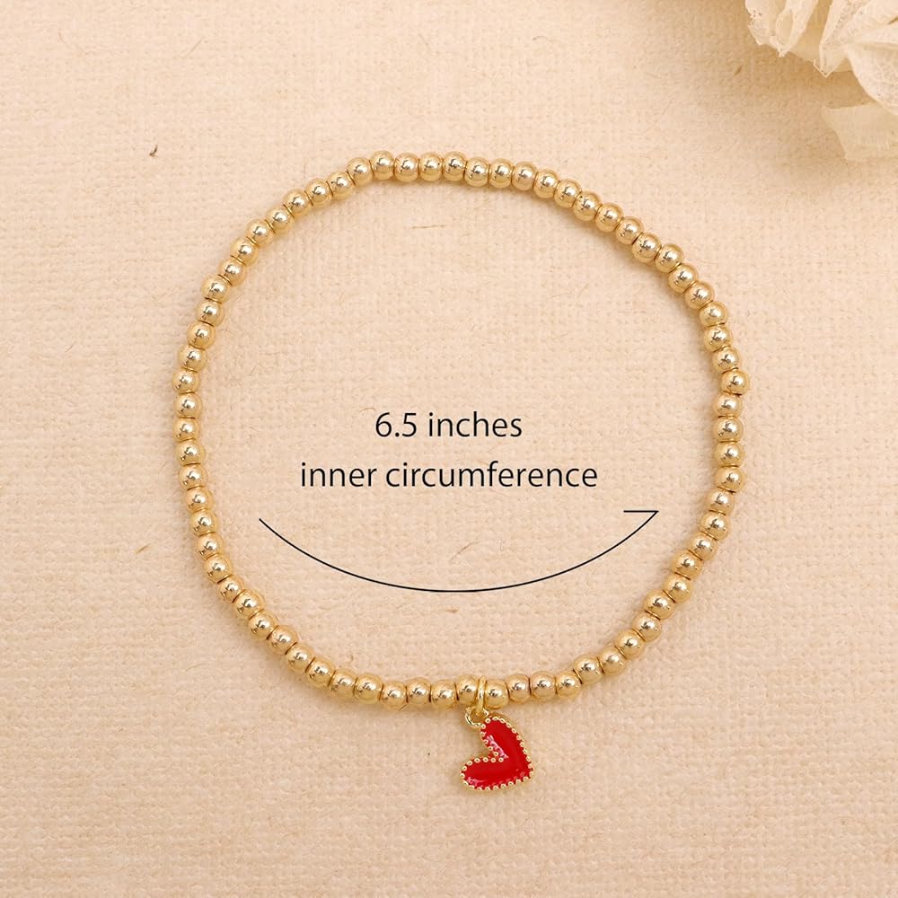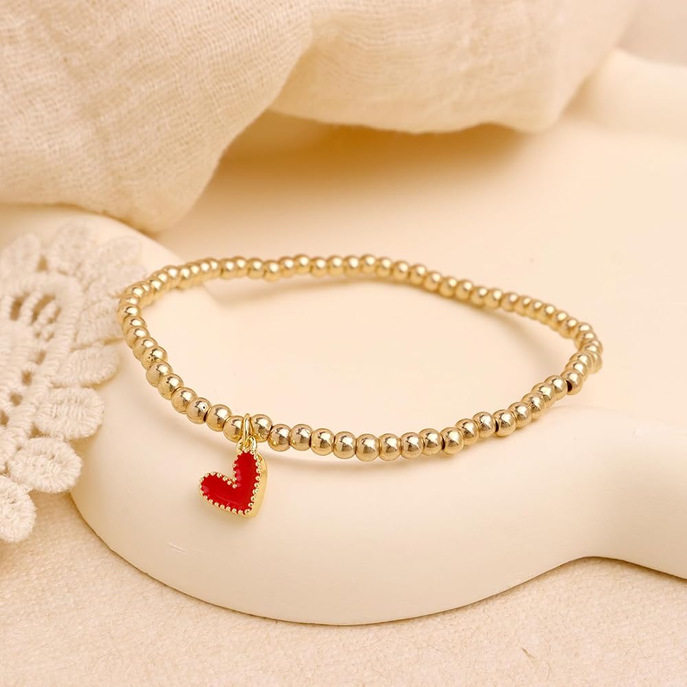 مجموعة أساور قابلة للتمدد على شكل قلب مطرز باللون الذهبي الأنيق للنساء، مجموعة أساور أنيقة مصنوعة يدويًا وقابلة للتكديس في عيد الحب والحب الأحمر وإكسسوارات المجوهرات والإكسسوارات.