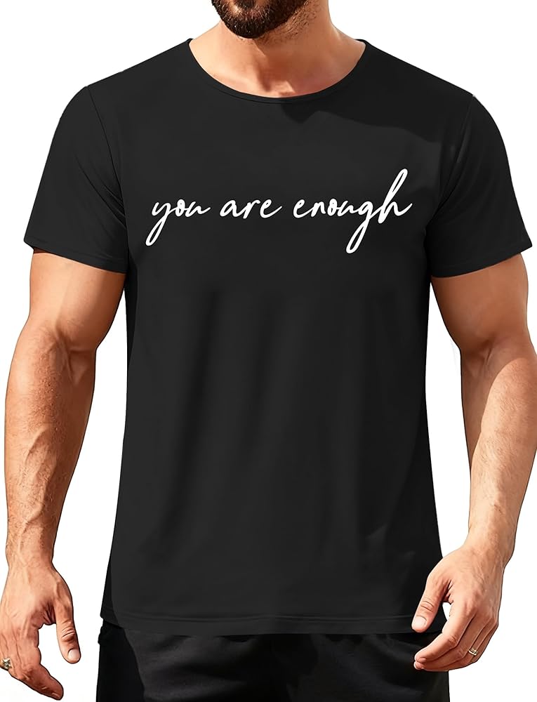 Features: Mens mental health tshirt, let them shirt, you are enough t shirt, you matter tees, featuring the powerful affirmations You Matter, Let Them and You Are Enough, perdct for promoting positive mental health awareness