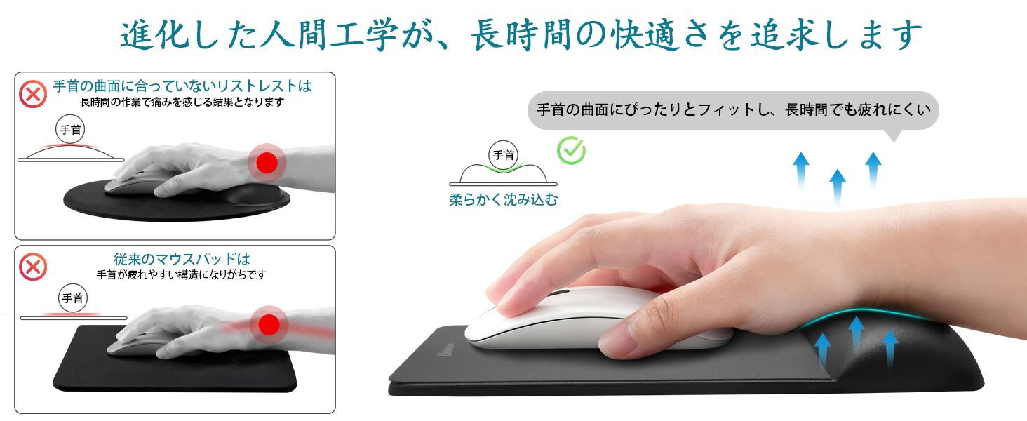 • 【تصميم مريح مريح】 الجزء الذي يوضع على معصمك يستخدم مادة منخفضة الارتداد، وليس مادة عالية الارتداد. بدلاً من أن تكون مرنة، فإن خصائصها الناعمة والغاطسة تسمح لها بأن تتناسب بشكل مثالي مع منحنيات معصمك. يعمل هذا على توزيع الضغط بشكل فعال ويقلل الضغط بشكل كبير أثناء الاستخدام، مما يحقق الدعم المثالي الذي يقلل من التعب حتى على مدى فترات طويلة.