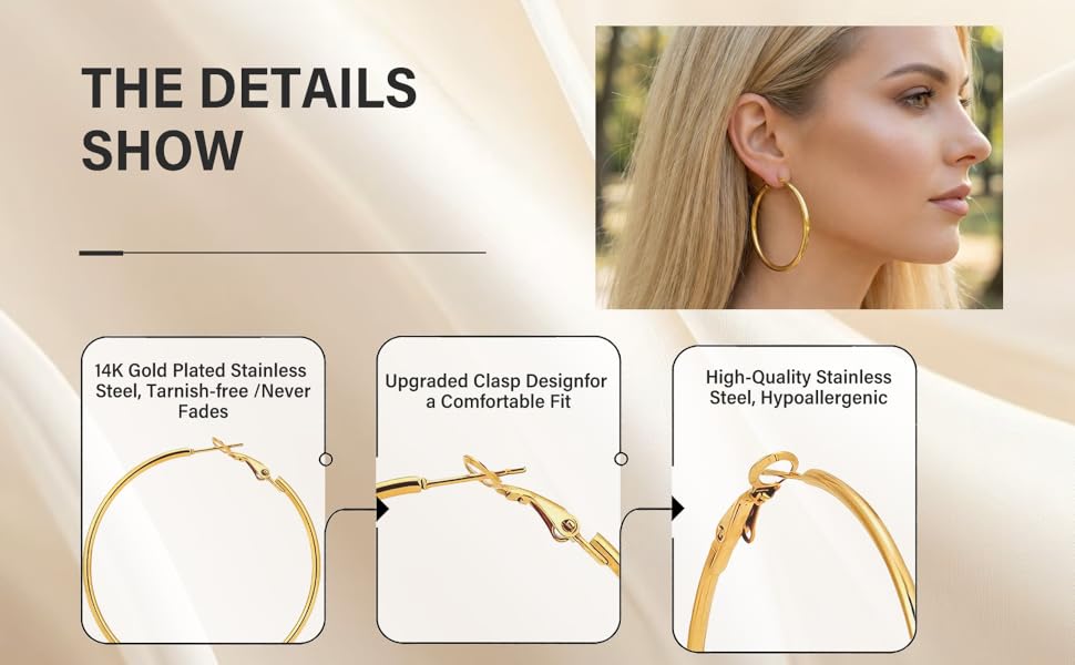 【سهلة الملاءمة】أقراط الطوق للسيدات بتصميم كلاسيكي وأنيق، تتناسب الأقراط المصنوعة من الفولاذ المقاوم للصدأ بشكل جيد مع المجوهرات الأخرى وتتماشى مع كل شيء في خزانتك، سيكون من السهل مواءمتها مع معظم ملابسك، بدءًا من ملابس مكتبك اليومية وحتى ملابس السهرة، سوف تبدو أكثر أناقة وجذابة مع هذه الأطواق