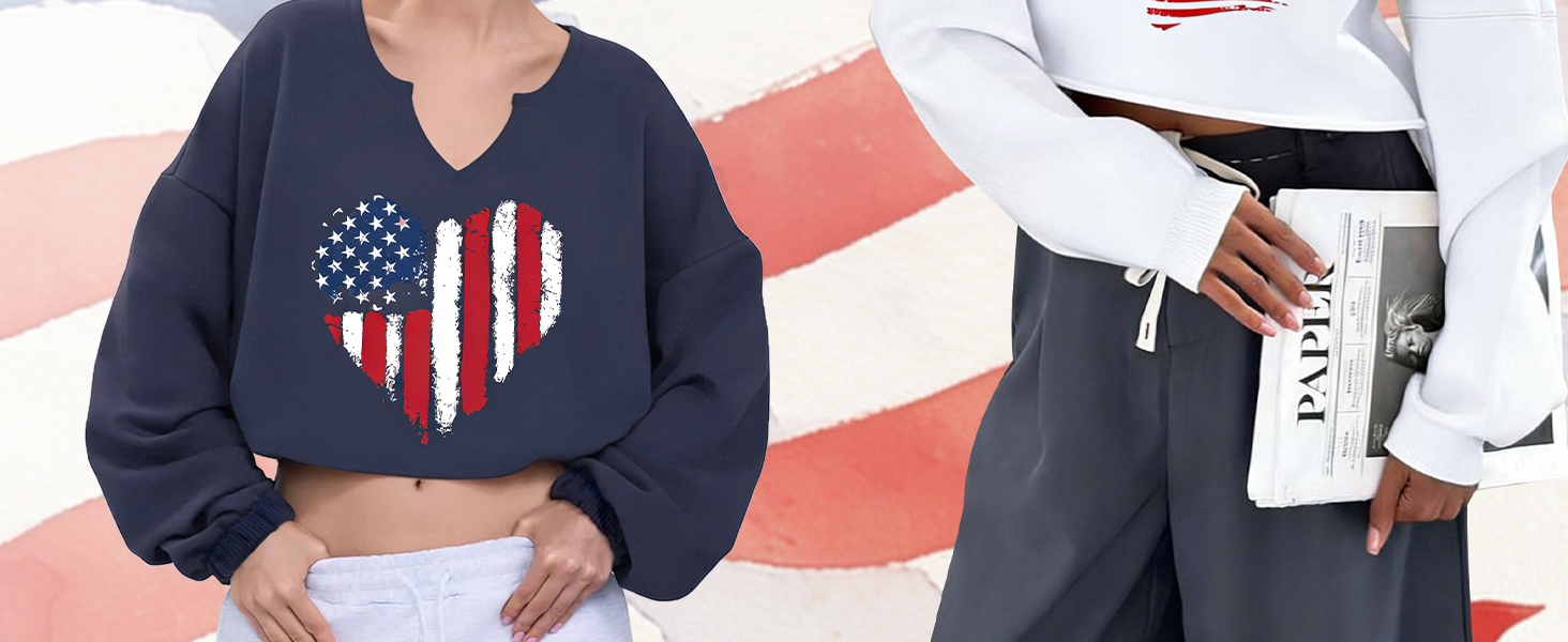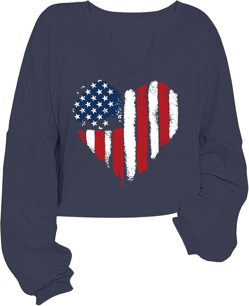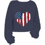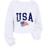 سويت شيرت نسائي بعلم الولايات المتحدة الأمريكية، مصنوع من نسيج مزيج القطن، مريح ومسامي للارتداء طوال الطريق