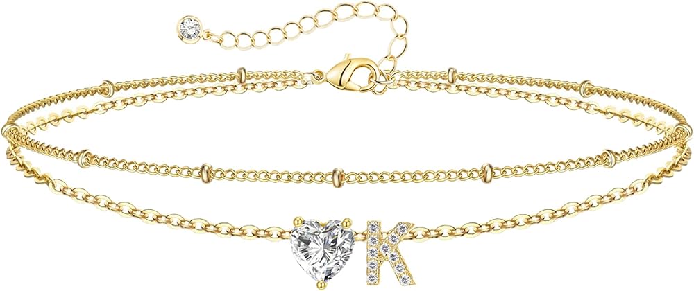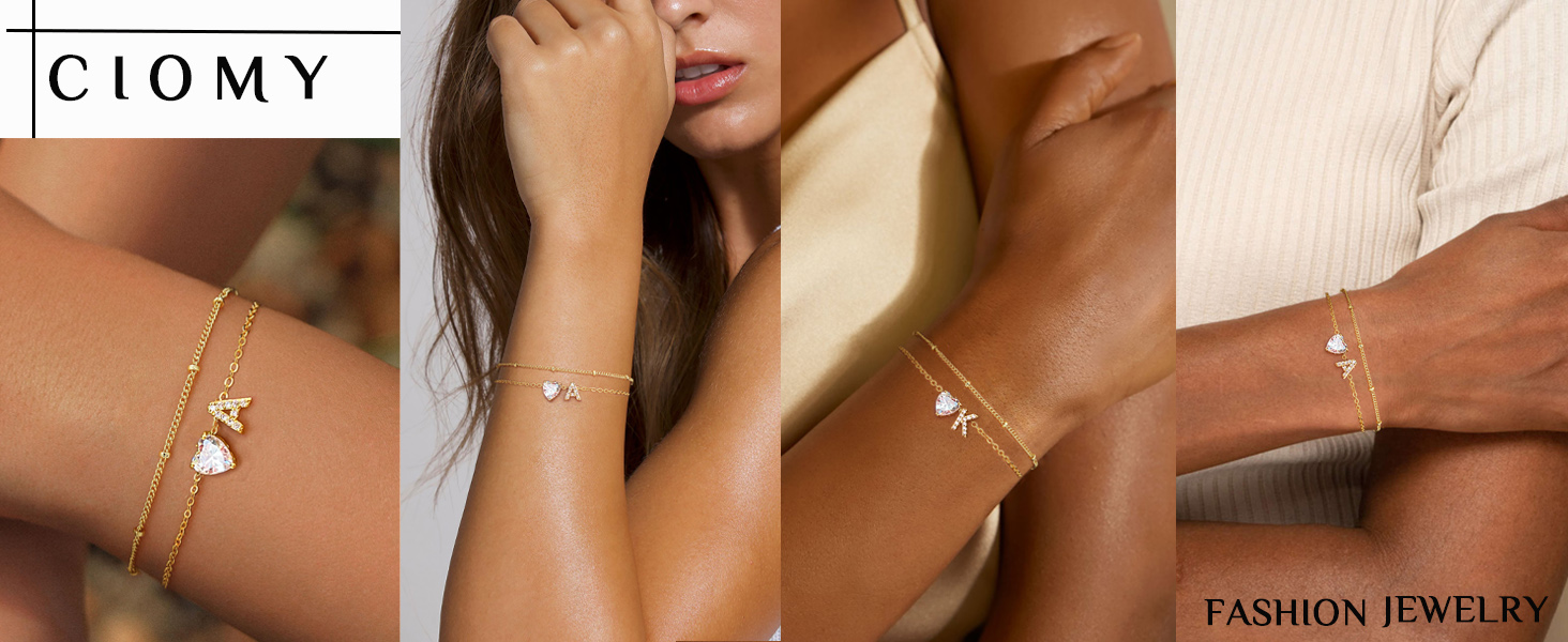 • أساور ذهبية: سوار أولي أنيق مع حليات زركونيا مكعبة، يضم 26 حرفًا أبجديًا، وقلادة على شكل قلب تشيكوسلوفاكيا، وتفاصيل سلسلة مطرزة. مثالي للعطلات على الشاطئ أو ليالي المواعدة أو لإضافة فخامة رقيقة إلى الملابس اليومية