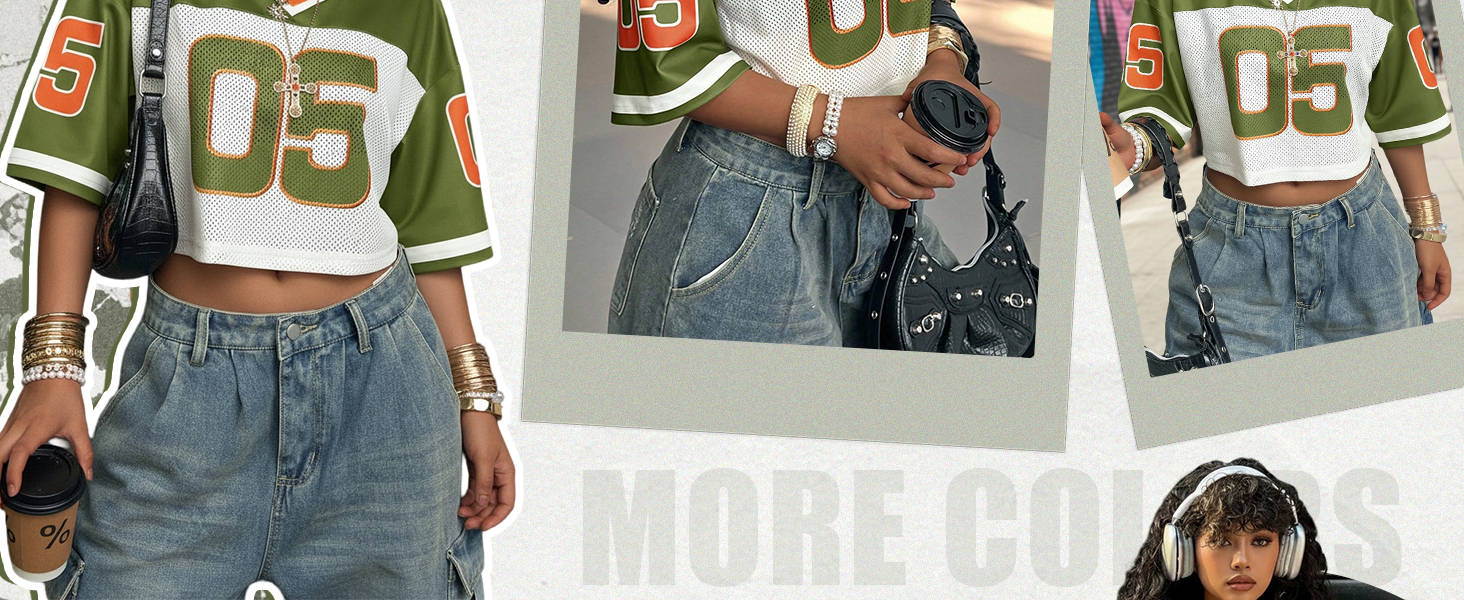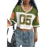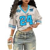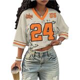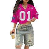 المزايا: قمصان كبيرة الحجم للسيدات، قمصان جيرسي للنساء، طباعة أرقام، نصف كم، رقبة على شكل حرف V، قصير، شبكي