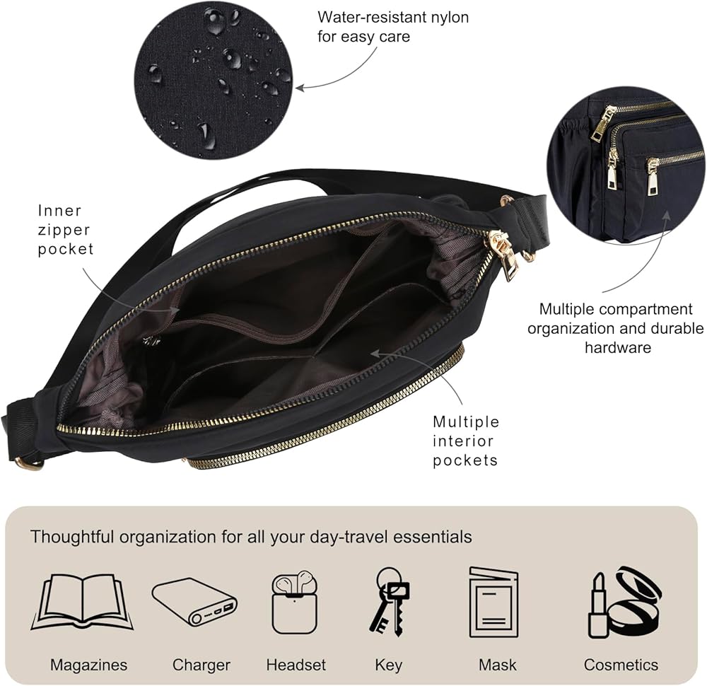 Waterproof Travel Crossbody Bag: It is as casual styling as practical with hands-free design. Adorned with golden hardware, easy to match with any style, any season. This lightweight crossbody bag for travel can be used for daily commute, short trips, work, shopping