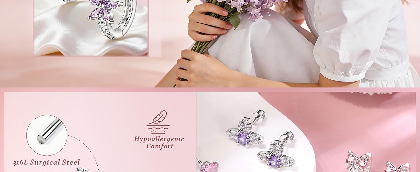 • تم تصميم هذا الزوج خصيصًا كأقراط مضادة للحساسية للفتيات، وهو لطيف على البشرة الحساسة، مما يجعله اختيارًا مريحًا للرضع والأطفال الصغار والأطفال الذين يعانون من آذان متهيجة بسهولة.