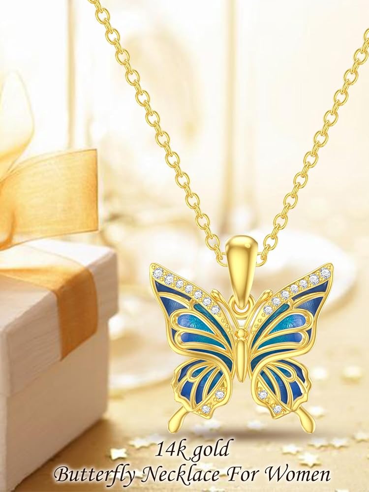 1* 14k real gold butterfly necklace