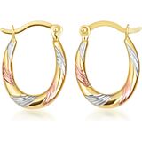 ✅Make a statement that blends classic beauty with contemporary style. These Tri-Color Striped Oval Hoop Earrings from Claddagh Gold! are a stunning celebration of unity and individuality. Crafted in a graceful oval silhouette, they feature a radiant mix of yellow, white, and rose gold tones, artfully striped to reflect elegance in diversity.