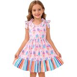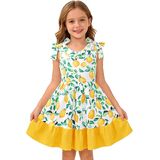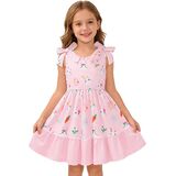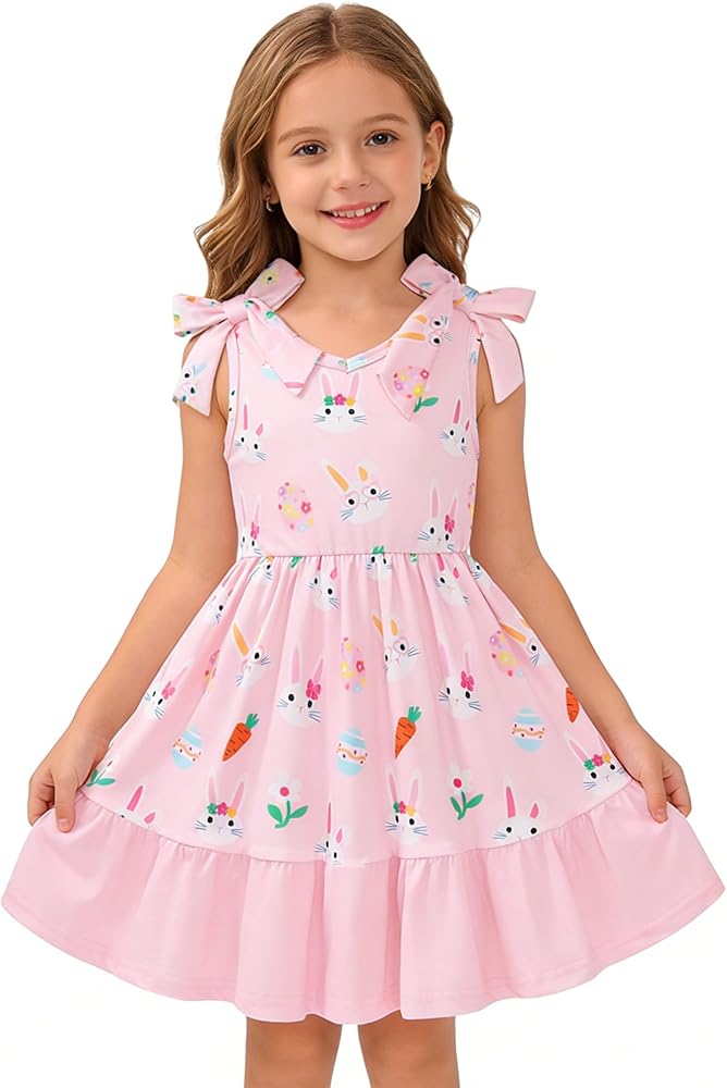• الميزات: يتميز هذا الفستان بدون أكمام للفتيات بأشرطة على شكل فيونكة ونمط مطبوع لطيف (عيد الفصح/الزهور/الليمون) وحاشية متدرجة لسهولة الحركة ومظهر أنيق.