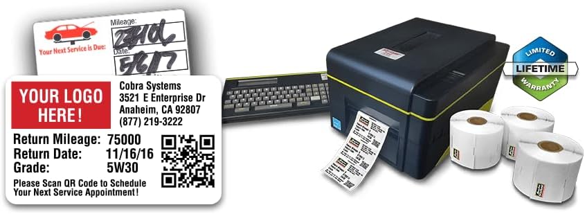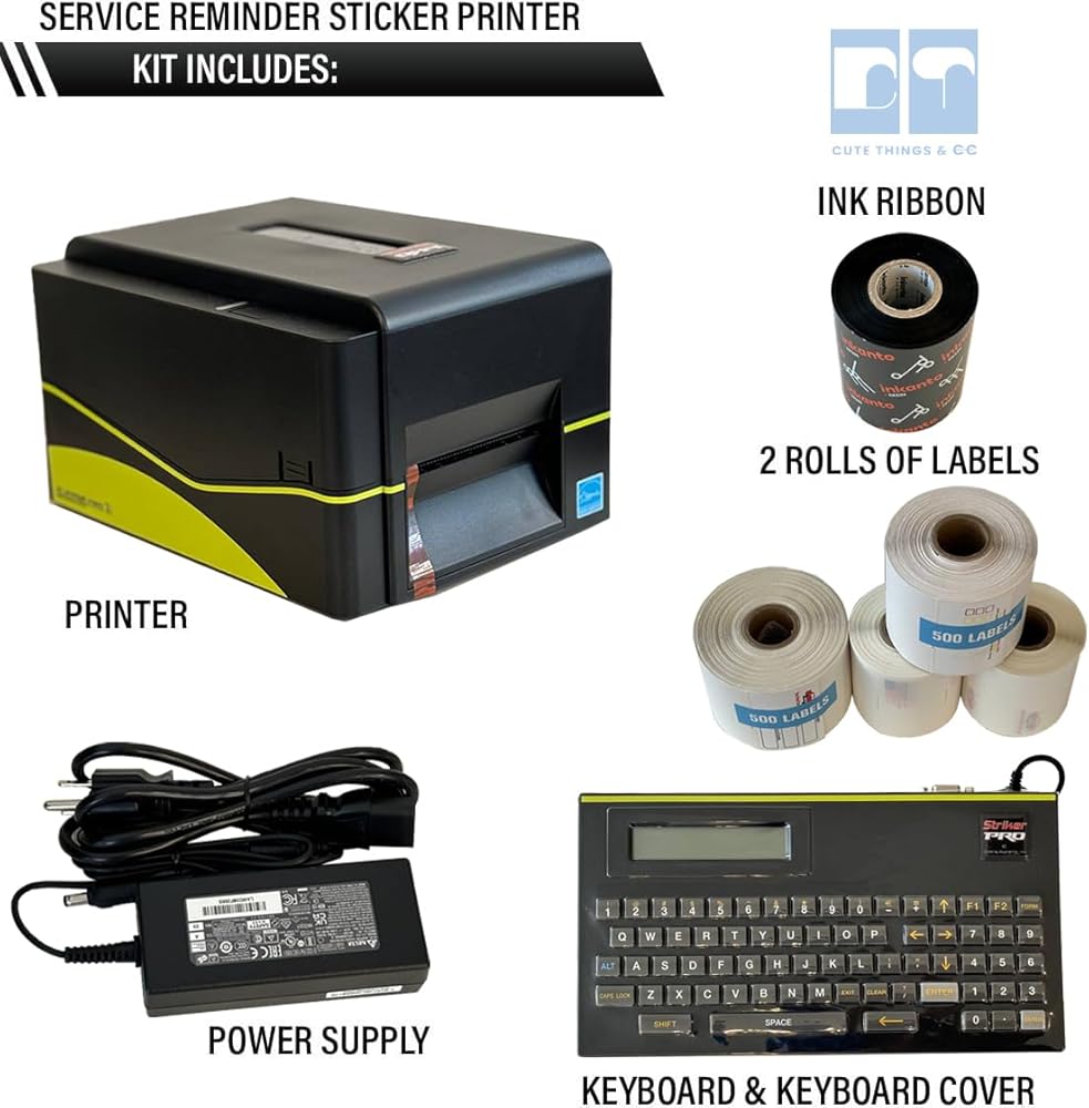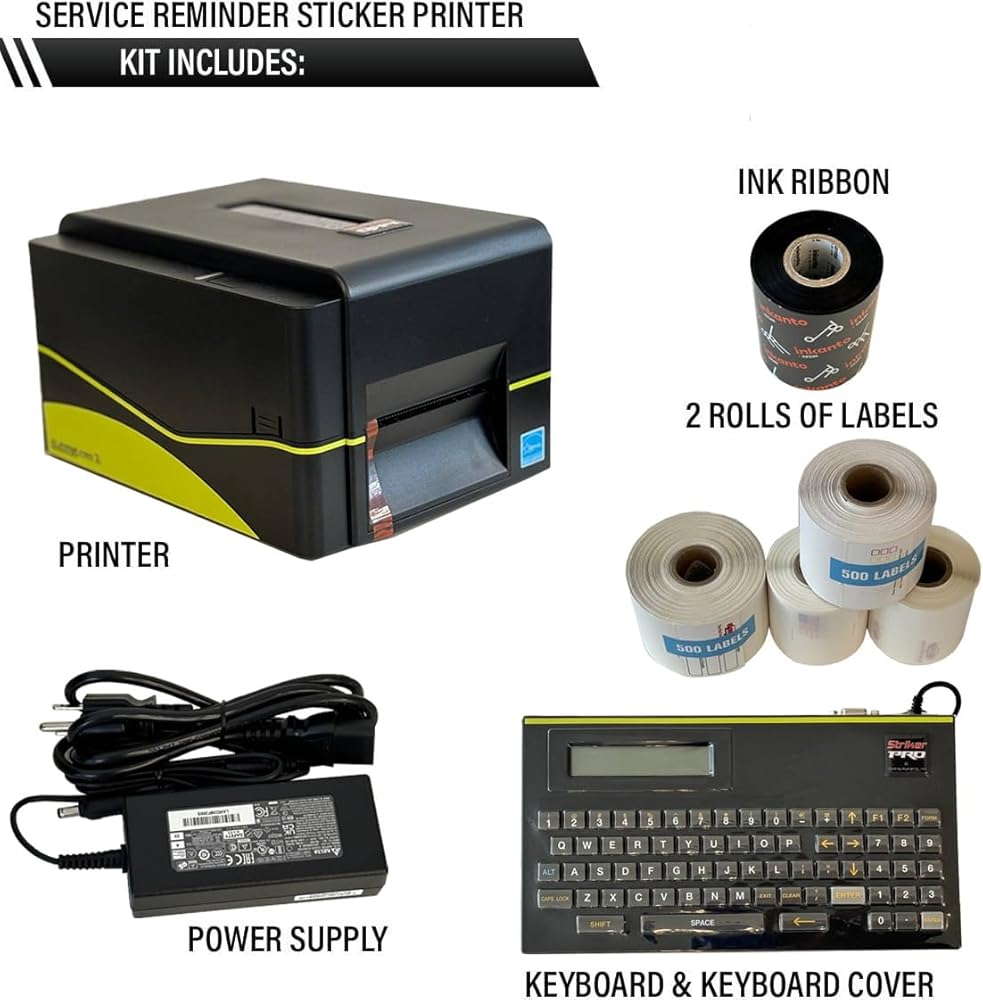 الطابعة Striker III V4.0: قلب هذه الحزمة هو الطابعة Striker III V4.0، وهي جهاز قوي وعالي الأداء يرتقي بطباعة تذكير خدمة الزيت إلى المستوى التالي. استفد من الميزات المتقدمة، بما في ذلك القوالب القابلة للتخصيص، والجدولة التلقائية، والتكامل السلس مع أنظمتك الحالية. استمتع بطباعة فعالة وعالية الجودة تعمل على تحسين استراتيجية التواصل مع العملاء لديك.