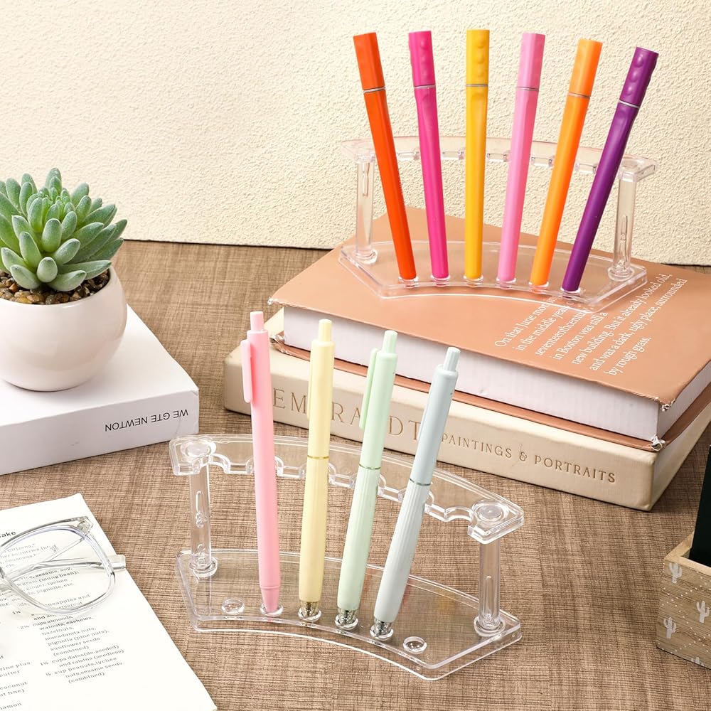 Space- saving Design: With these simple plastic pen stands, you can place and display your writing tools as you like, keeping them organized and ready to use. It can hold up to six pens at the same time, making it the best choice for you to organize your beautiful pens while saving space on any desk or table. In addition, it is easy to carry and doesn't take up much space.