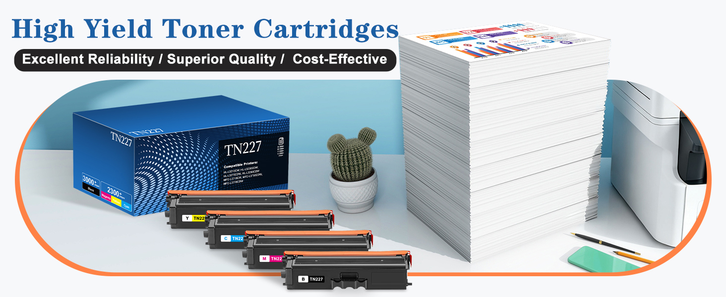 [إنتاجية الصفحة] ما يصل إلى 3000 صفحة للحبر الأسود TN227 وما يصل إلى 2300 صفحة لكل حبر ملون TN227 (A4، بتغطية 5%)