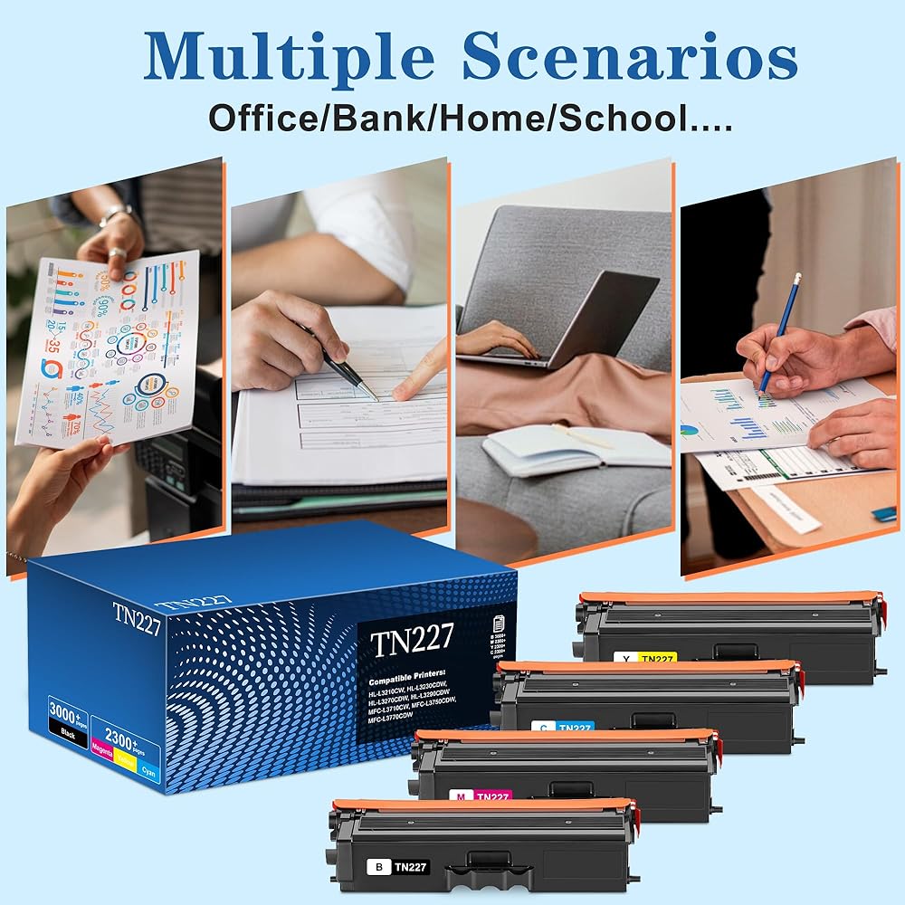 [محتويات العلبة] عبوة واحدة من الحبر الأسود TN227، عبوة واحدة من الحبر السماوي TN227، عبوة واحدة من الحبر الأصفر TN227، عبوة واحدة من الحبر الأرجواني TN227