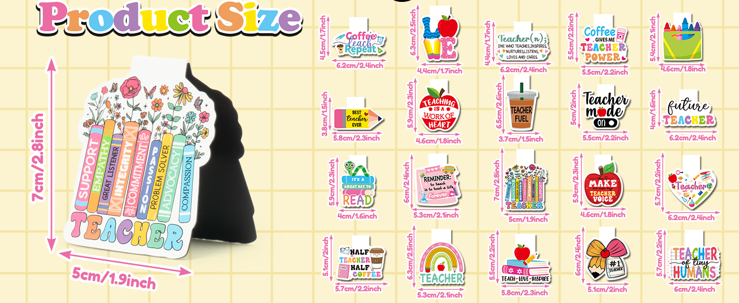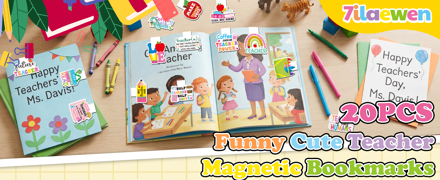 علامات مرجعية مغناطيسية مضحكة للمعلم: حزمة من 20 علامة مرجعية مع عبارات مرحة وتصميمات لطيفة تجلب الابتسامة على وجه أي معلم. طريقة ممتعة لإظهار التقدير للمعلمين الذين يقضون أيامهم في تشكيل عقول الشباب.