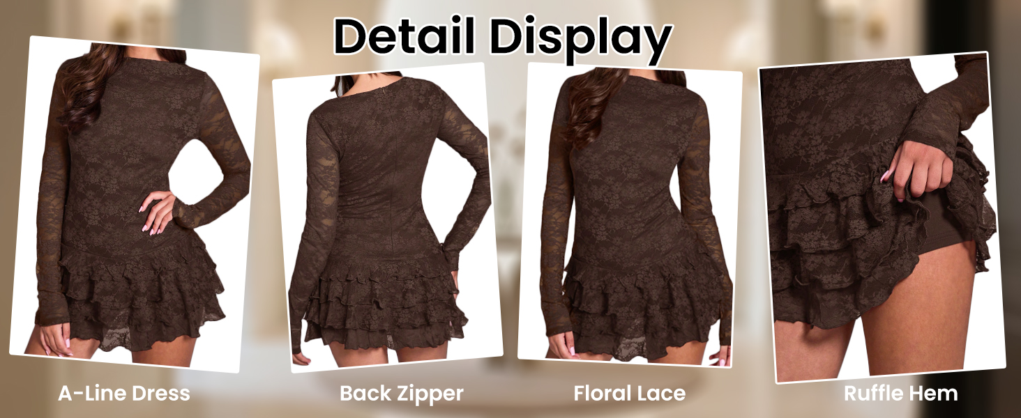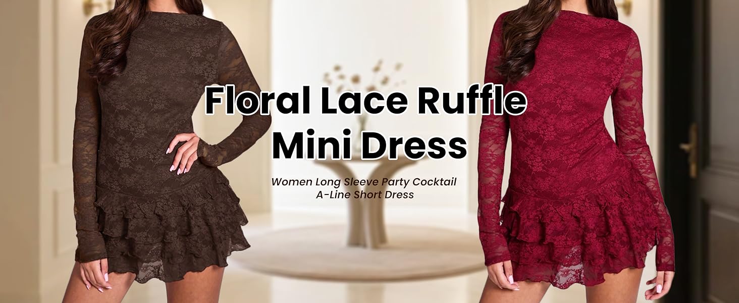 • المزايا: فستان قصير على شكل حرف A بأكمام طويلة جمالي من Y2K للنساء، فستان قصير من الدانتيل ذو رقبة قارب عتيقة، فستان قصير عصري بحاشية مكشكشة بطبقات من طبقات للمناسبات المسائية، فساتين قصيرة ذات طبقات بحاشية نحيفة واسعة للسيدات تخلق أجواء أنثوية أنيقة.