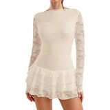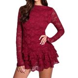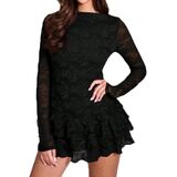 • نصائح: يُغسل يدويًا أو يُغسل في الغسالة بلطف بماء بارد، يُعلق أو يُعلق ليجف، لا تستخدم مبيضات. فستان قصير مثير بطبقات من الدانتيل الشفاف والمكشكش.