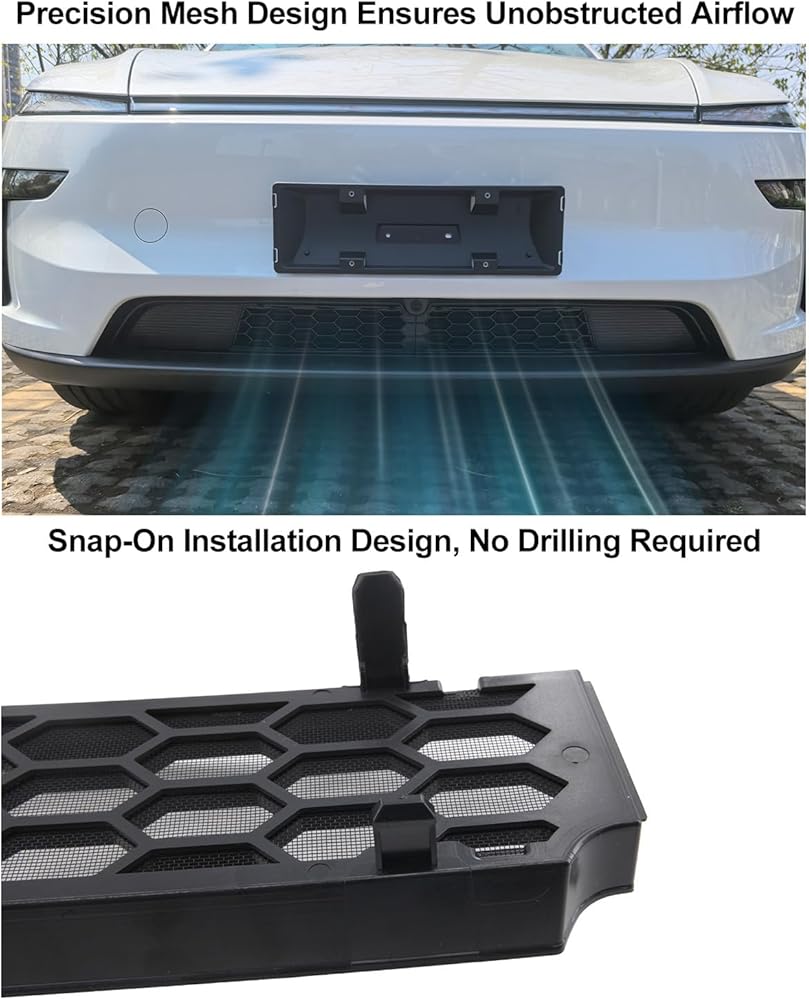 الديناميكيات الهوائية المحسنة: يتميز غطاء شبكة فتحة التهوية من طراز y Juniper بنمط شبكي ناعم مصمم بعناية على شكل قرص العسل يعمل على تحسين تدفق الهواء للحفاظ على الكفاءة والمدى. من خلال الحفاظ على تدفق هواء ثابت مع منع الحطام من الاختراق، تقلل الشبكة الأمامية من طراز تيسلا من الأضرار الباهظة التي تلحق بأداء تكييف الهواء وتبريد البطارية