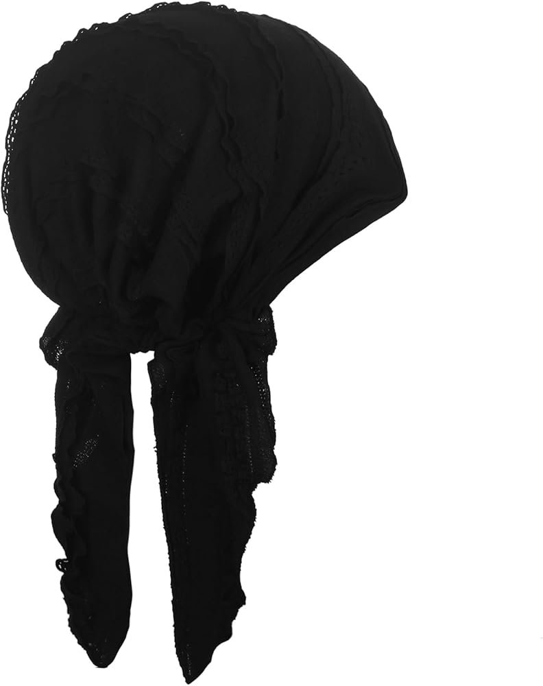 DESIGN:Slip-On Bandannas tied Headwrap for easy slip on and off,Long Straps Solid Color Pattern,an elastic band on the back. When wearing it, you just need to cover the head with the pre tied chemo cancer turban, and can be quickly fixed. In addition, there are two straps.They can be used to adjust the tightness to fit the head snugly.