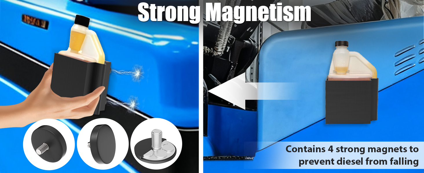 【مغناطيسية قوية】تم تجهيز حامل إضافات الديزل المغناطيسي بـ 4 مغناطيسات قوية، والتي يمكن ربطها بقوة بمنتجات الحديد ومنعها من التحرك. وفي الوقت نفسه، لن يخدش المغناطيس المغلف سطح السيارة.