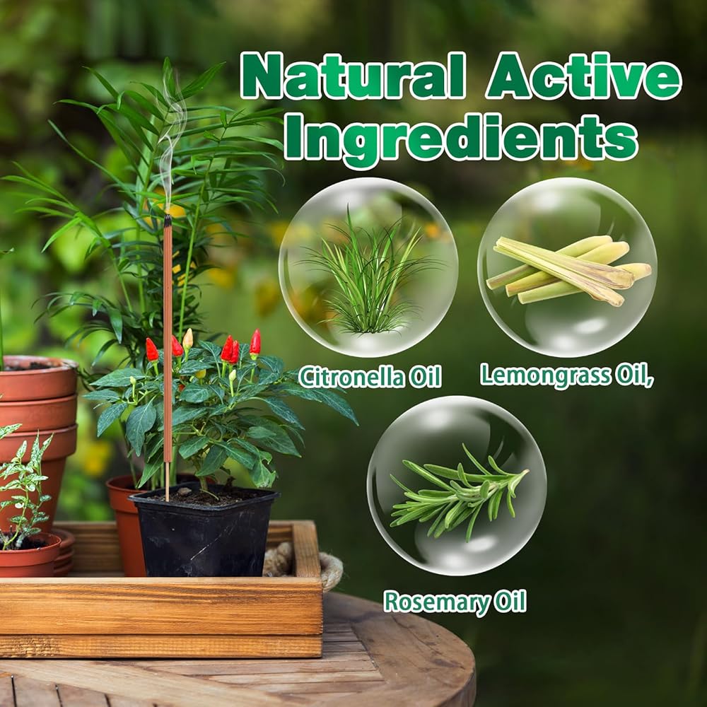 • طارد البعوض الطبيعي - هل تبحث عن حل لإبعاد البعوض الذي يمتص الدم عنك؟ سيكون هذا الفناء الخارجي الطارد للبعوض هو خيارك لهذا الصيف. تُصنع أعواد بخور السترونيلا الطاردة للبعوض في الأماكن المغلقة من الزيوت العطرية النباتية التي تنشر رائحة طبيعية لطيفة بكفاءة. أعواد البخور الطبيعية الطاردة للبعوض يمكن أن تجعل أنشطتك الداخلية والخارجية لم تعد مشكلة مزعجة