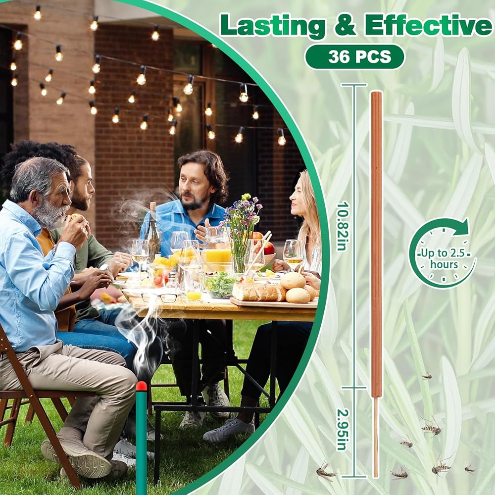 فناء خارجي طارد للبعوض، 36 قطعة من أعواد بخور زيت السترونيلا للبعوض - رادع طبيعي قوي للبعوض للفناء الداخلي وغرفة المنزل والسفر والتخييم