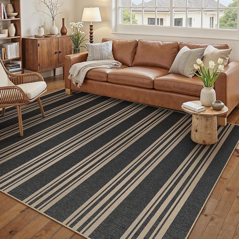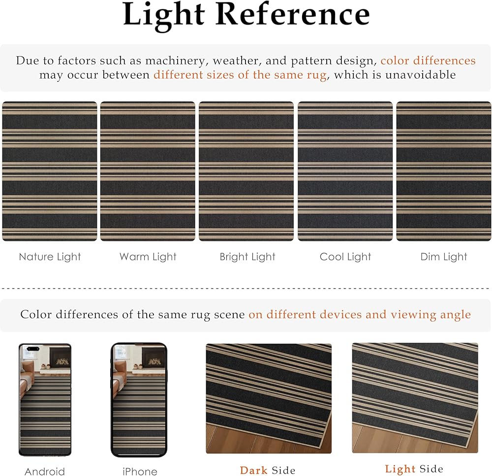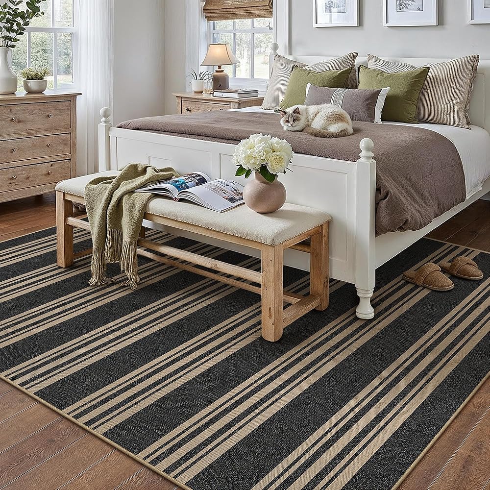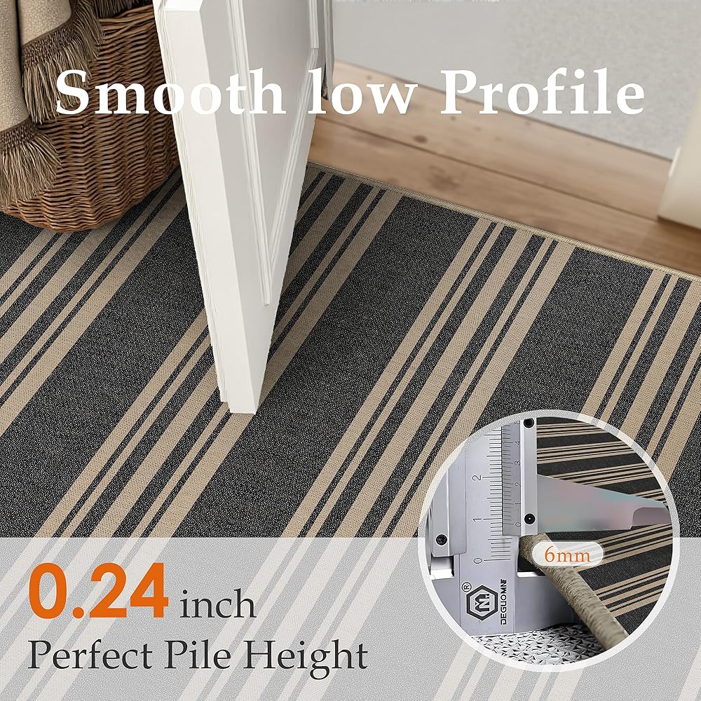 سجادة جوت مخططة سهلة 2 × 3 سجادة مدخل سوداء قابلة للغسل وغير قابلة للانزلاق سجادة باب مزرعة محايدة غير قابلة للتساقط مدخل صغير داخلي في الهواء الطلق للمطبخ وغرفة النوم والحمام