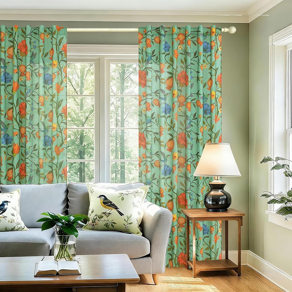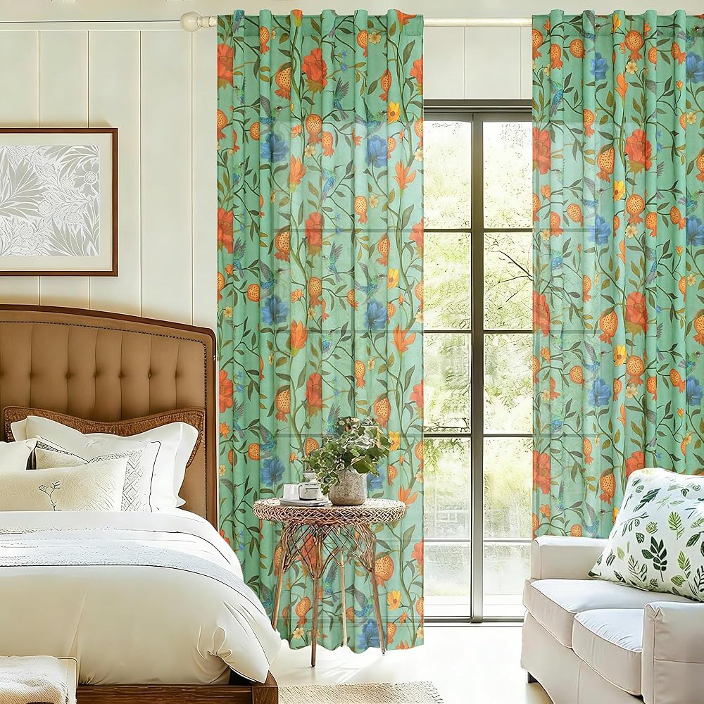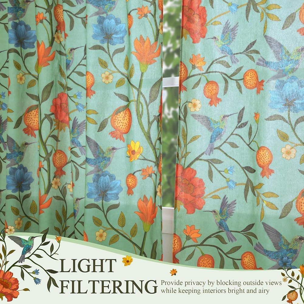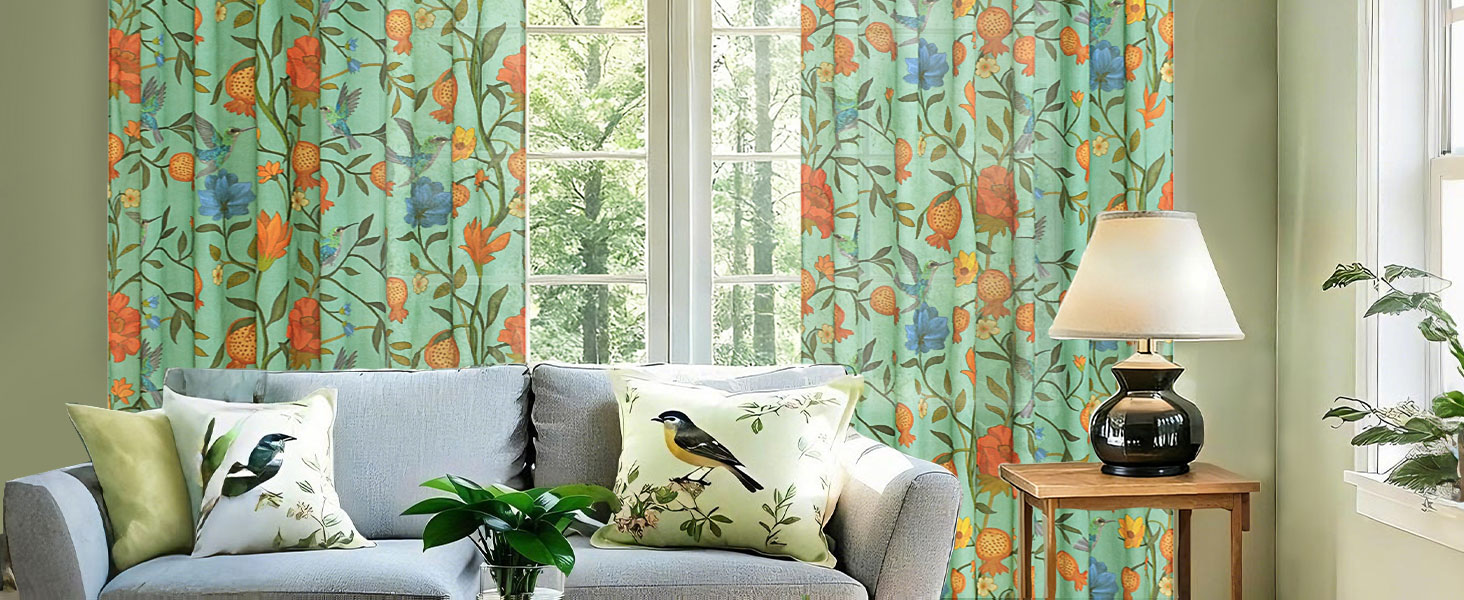 ستائر Spring Farmhouse Floral Birds: ستائر الكتان مع مطبوعات زهور الطيور والأنماط الدقيقة تضفي سحرًا خالدًا وشخصية فنية. ستائر غرفة المعيشة مع لمسات الطيور الغريبة تخلق جوًا مفعمًا بالحيوية والرقي. عمق الألوان الغني واللمعان الخفيف يضيء الغرف ويضيف اهتمامًا بصريًا