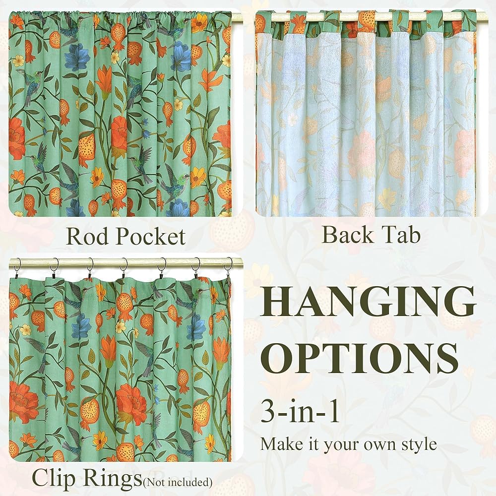 مجموعة من لوحتين ستائر زهرية عتيقة لغرفة النوم: ستائر غرفة المعيشة ذات نمط مثالي، كما أنها ديكور مثالي لغرفة النوم أو المطبخ لتعزيز الراحة والأناقة. مناسب لتحديثات ديكور الخريف أو الطبقات على مدار العام مع الألواح الشفافة