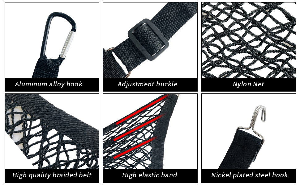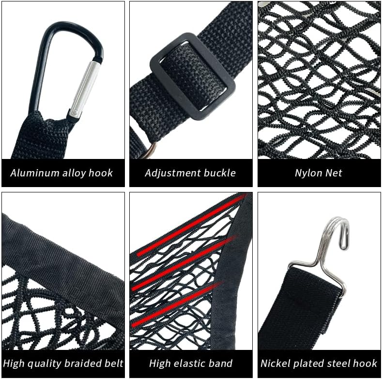 استخدامات متعددة: أحزمة حبل قابلة للتعديل ونسيج نايلون غير قابل للتمدد تجعل هذه الحقيبة المنظمة مناسبة لمعظم السيارات وسيارات الدفع الرباعي وUTVs وسيارات الجيب لمنع الترهل بسبب الوزن.
